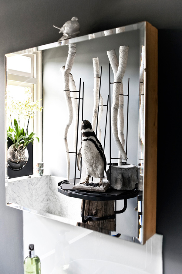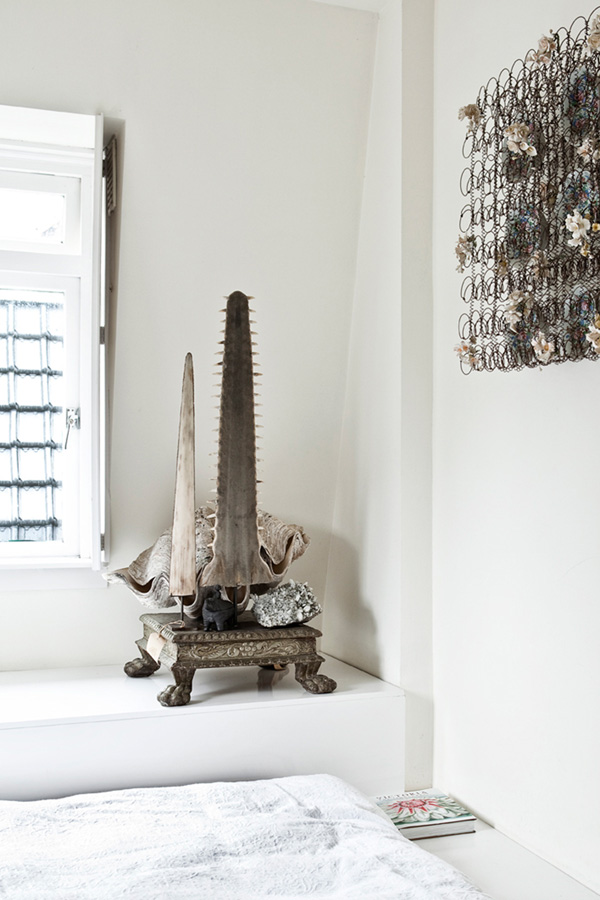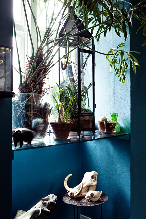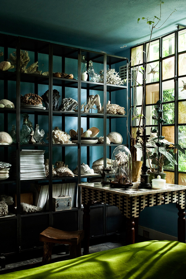 I have pretty much died and gone to heaven. This home is a combination of all the things I adore – dark colours, vintage everything, collections. A genuine cabinet of curiosities, a wunderkammer, a visual delight. This is what a home should be. Filled with found items, something intriguing at every turn, eclecticism to the max. This is the Amsterdam home of Florian Seyd and Ueli Signer of famed flower/design shop aptly named The Wunderkammer. Via Architectural Digest Spain, photos by Marc Van Praag.