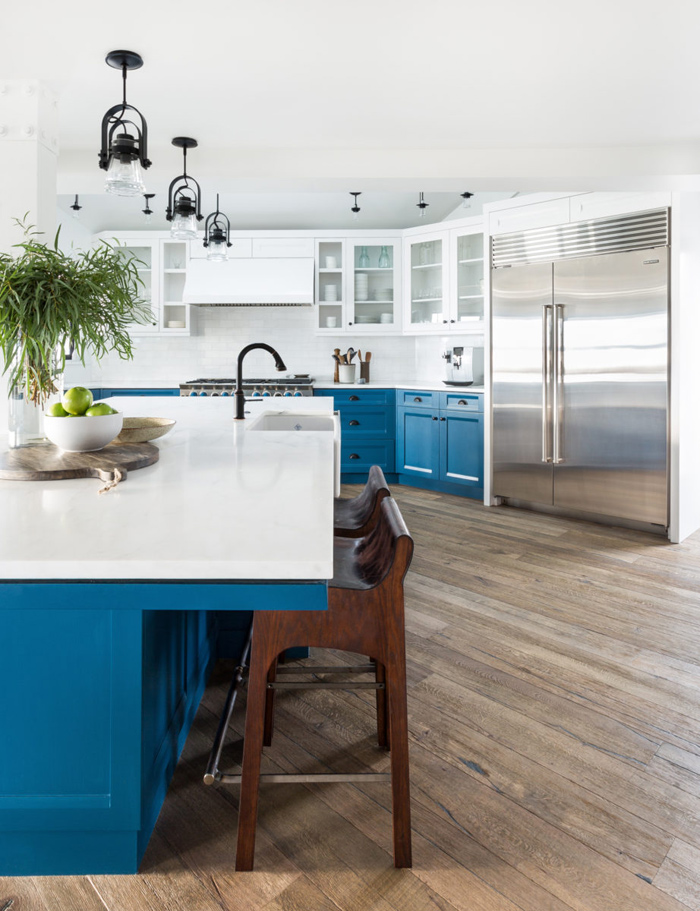 I wanted to share another awesome project by designer Brian Paquette, however this one is a bit of a departure from his typical colour palette and is bright and playful. I really like the idea of an unexpected colour for all of a kitchen’s lower cabinets. I’d love to see this in either a kelly or forest green.