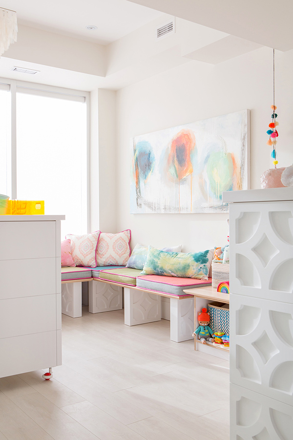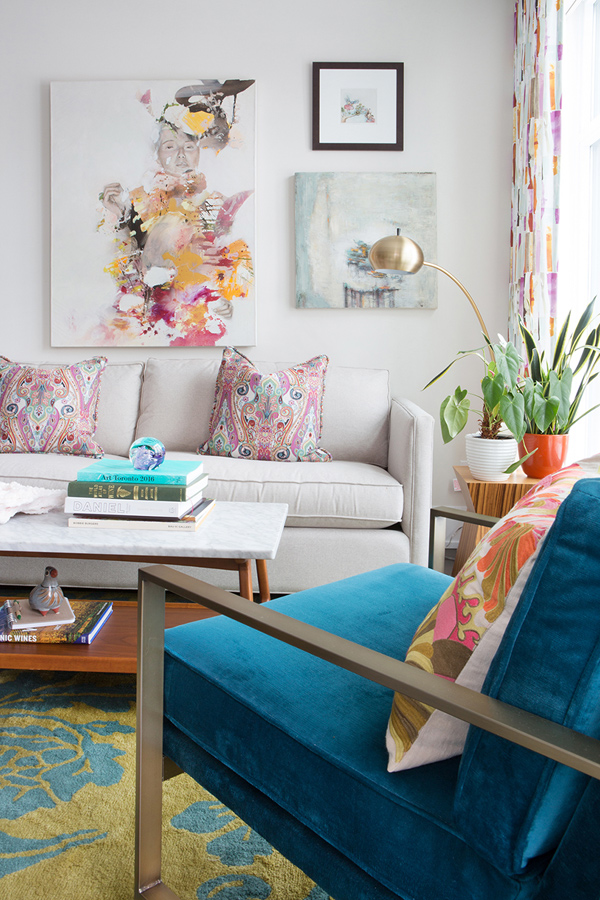 Bold, bright colours is what Toronto designer Tiffany Pratt is all about, and I would expect nothing less from someone who rocks orange and pink hair. This along with her eclectic blend of old and new, casual and elegant makes for some pretty ye catching spaces.