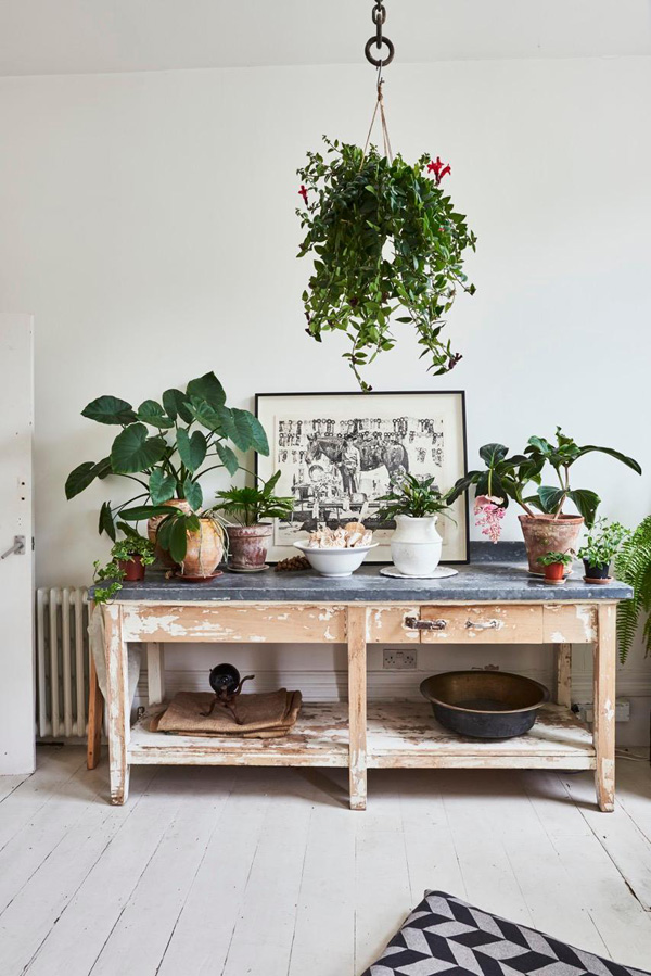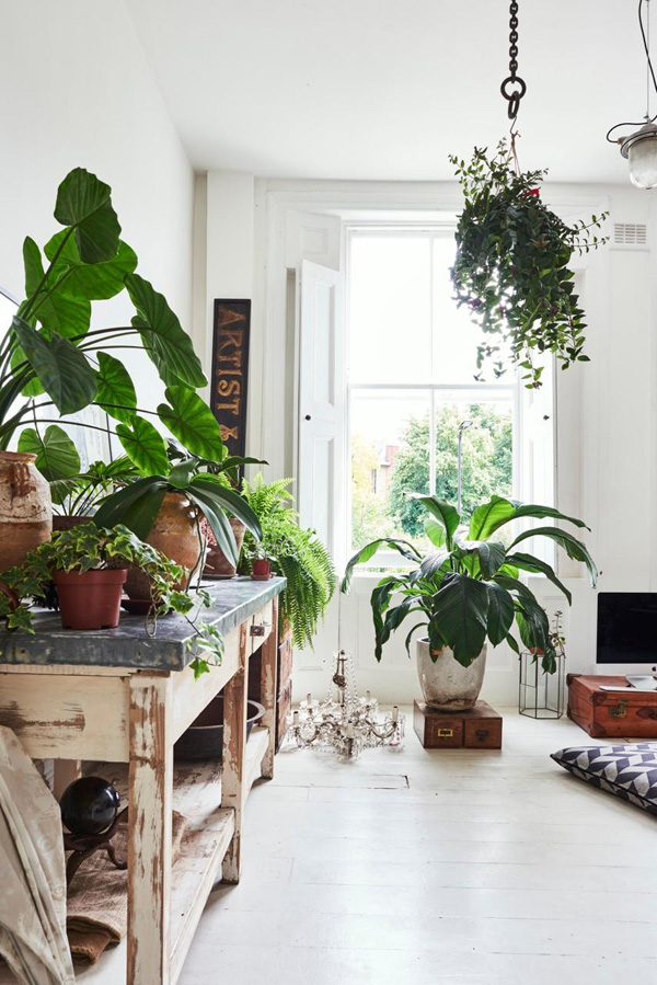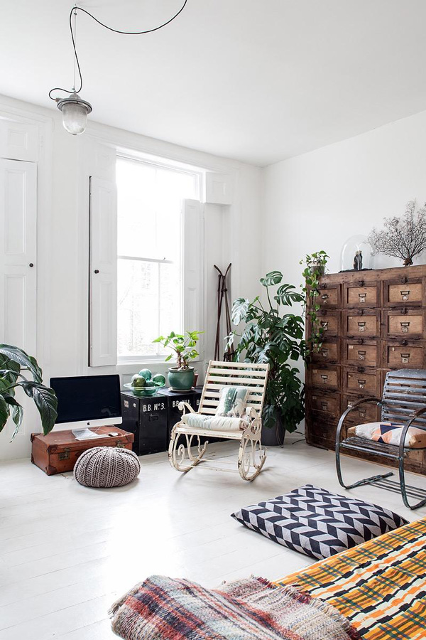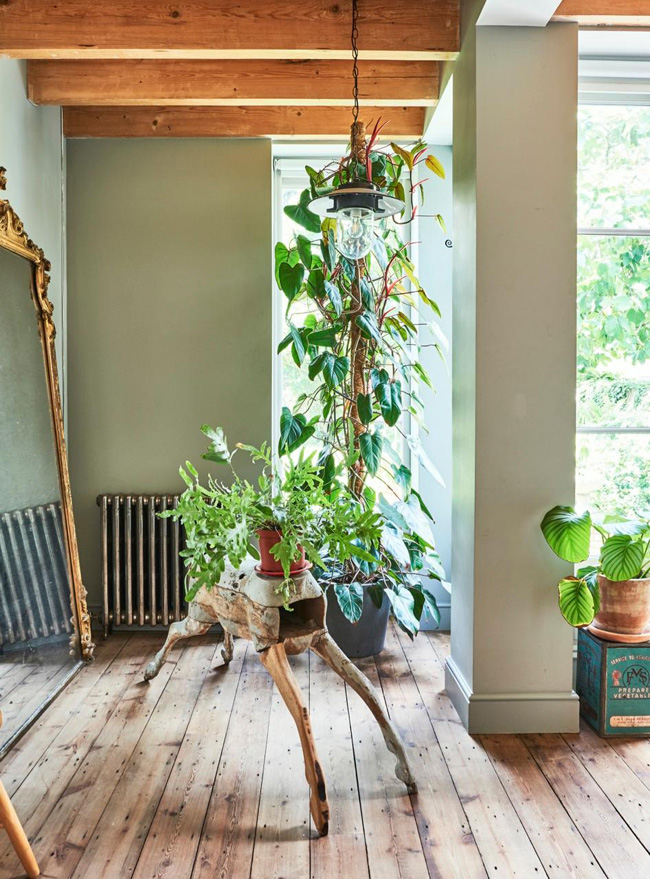 A winning combination of vintage furnishings and tons of plants were the reason I had to share this London terrace maisonette built in the 1800’s and recently remodelled. A mix of painted and natural wood floorboards, exposed wood beams, a kitchen I am dying over and storing in my inspiration file, and the most beautiful windows and doors help make this home sooooo special. Available as a location home through jj Locations.
