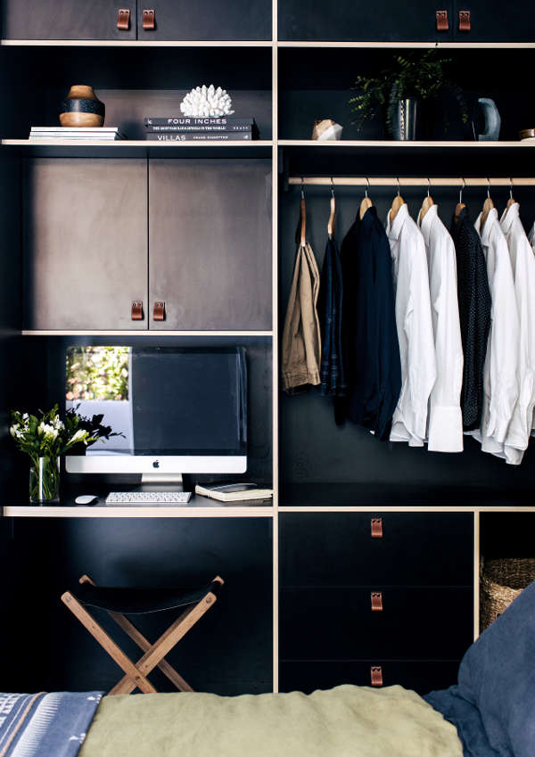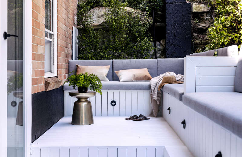 Not your ordinary bachelor pad in the Sydney suburb of Queenscliff by Jillian Dinkel Designs. Public areas in the renovated apartment are bright and light with a touch of retro cool while a more moody palette is just right for the bedroom. I’m loving the built-in seating in the small courtyard. Perfect for entertaining.