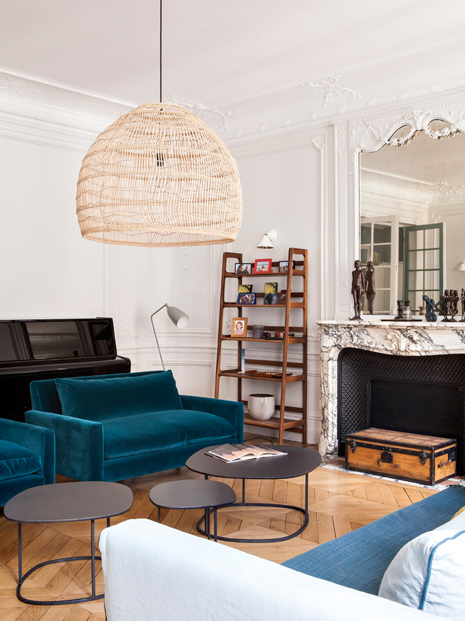 Architect and designer Camille Hermand has designed yet another stunning Parisian apartment that has me swooning, as her projects always do. The molding detail, marble firepleace and chevron floors are a dream, and I LOVE the wallpaper in the bedroom.