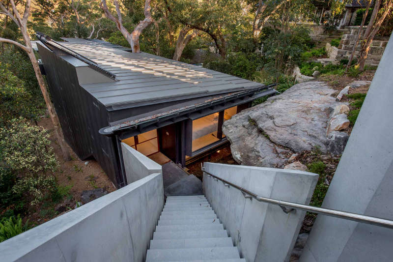 I’m stalking a 2016 Palm Beach, Sydney house by renowned Australian architect Glenn Murcutt. Conceived of concrete, steel, toughened glass and black zinc cladding, it touches the land gently, perched between sandstone outcrops and Angophora gums. Functional, sustainable living in the trees close to the sea. Link here while it lasts.