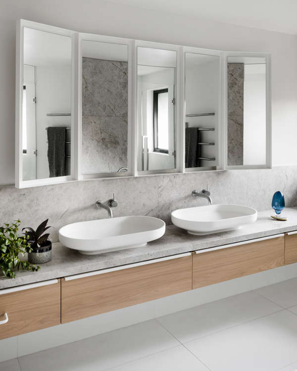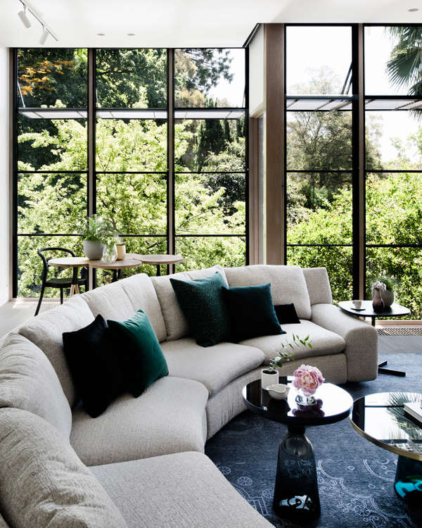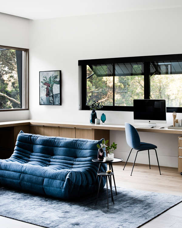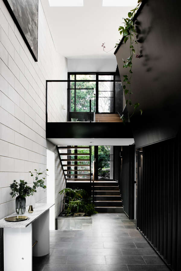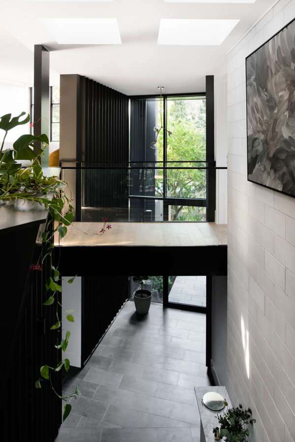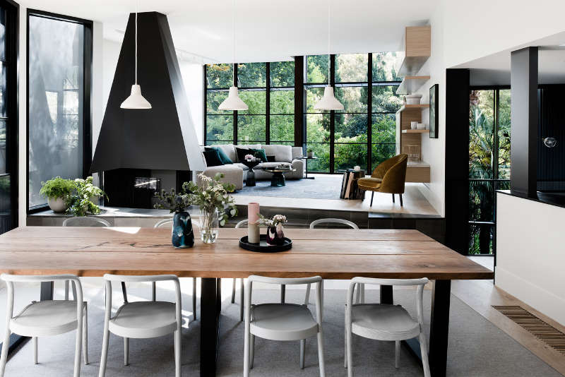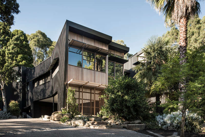 Nestling into the slope this split level house by Melbourne-based Technē Architecture + Interior Design sees light filled public spaces rotating off a central dark spine. Family living is bespoke, understated and stylish all the while not distracting from the beautiful bushland surrounds.