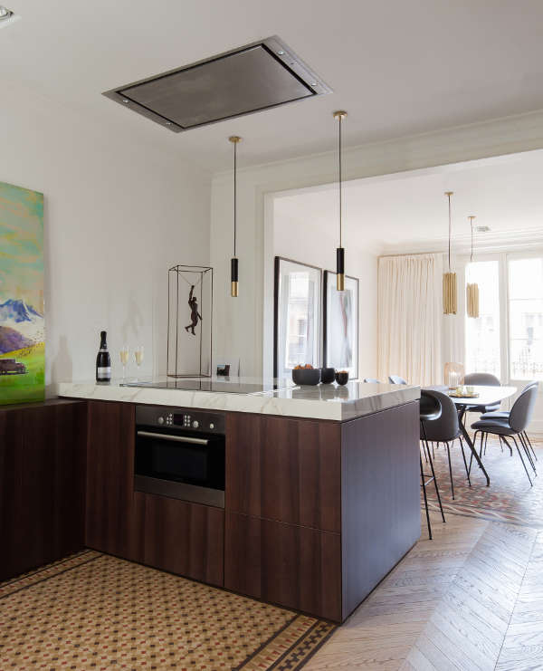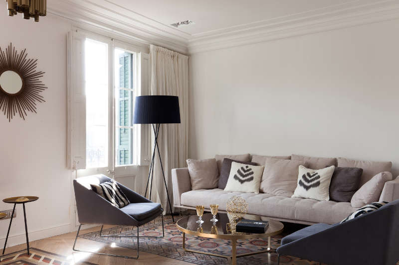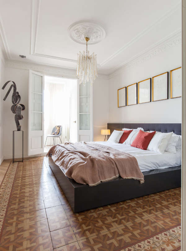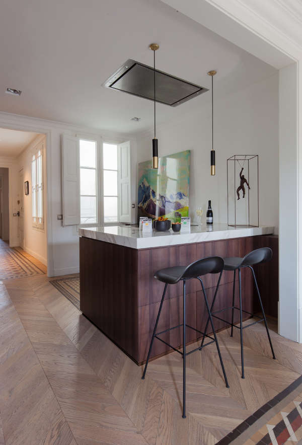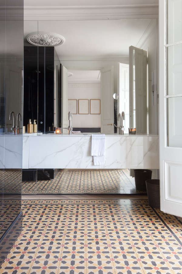 Minimalist, modern living within a historic shell. Beautiful traditional tiles flow throughout the apartment defining and grounding each zone while contemporary furniture pieces sit on, almost apart, from the busy patterns. A holiday home for an English family by Barcelona-based Spanish-German architectural and interior design firm YLAB Arquitectos. Elegant and comfortable.