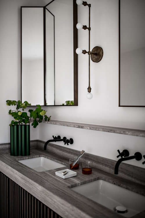 “Juxtaposing lush materiality with sleek, edited lines, this elegant space highlights masculine and feminine silhouettes with high-contrast, architectural detail for an air of improvised sophistication and effortless luxury.”