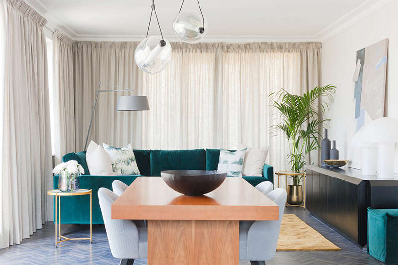 Their clients were open to their bold and colourful choices so 2LG Studio (that’s 2 Lovely Gays) started with a dramatic entry then burst out into a bright open plan living dining and kitchen area. There are Art Deco riffs to this renovation of a 90s bland and boring penthouse but the final design is edgy and fashion forward.