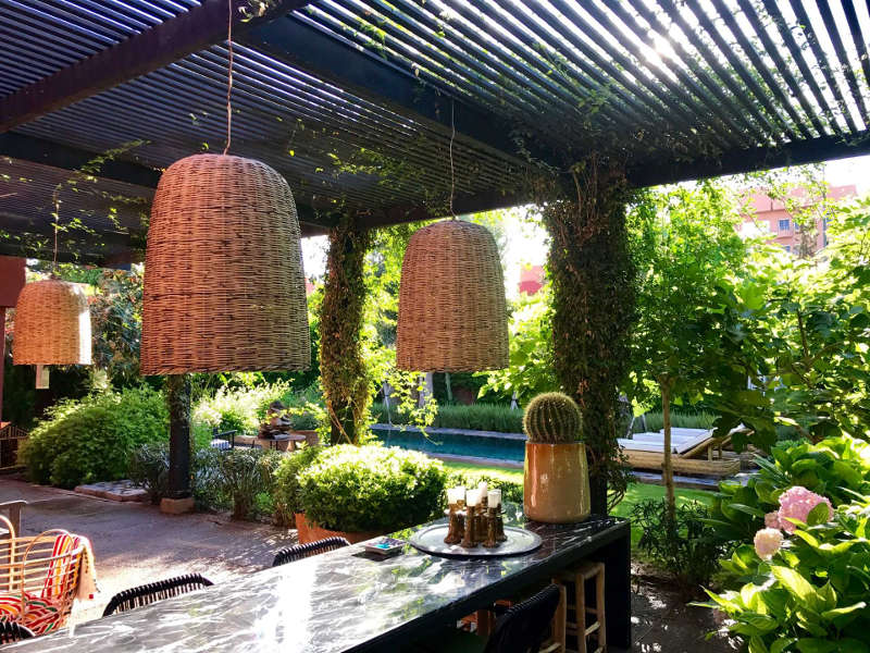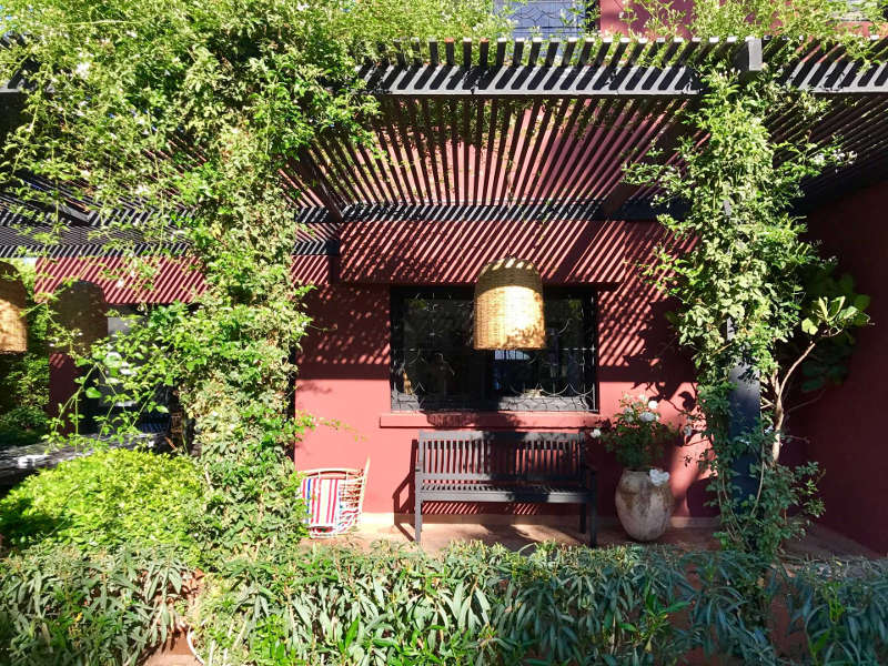 Behind a high wall in Marrakesh is an oasis of green. Cool, lush, inviting. Designer (and general manager of the beautiful boutique hotel El-Fenn) Willem Smit has created a retreat from the hustle and bustle, the heat and the dust of an ancient city.