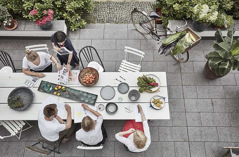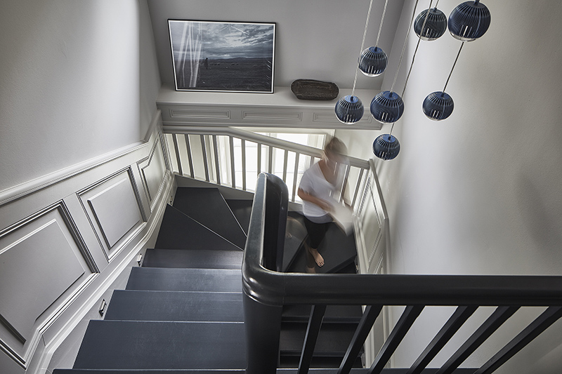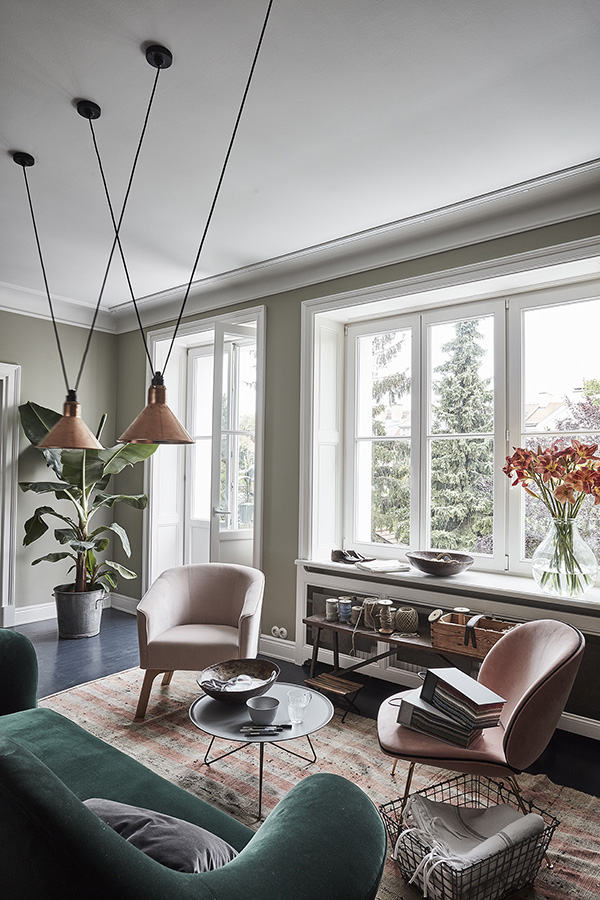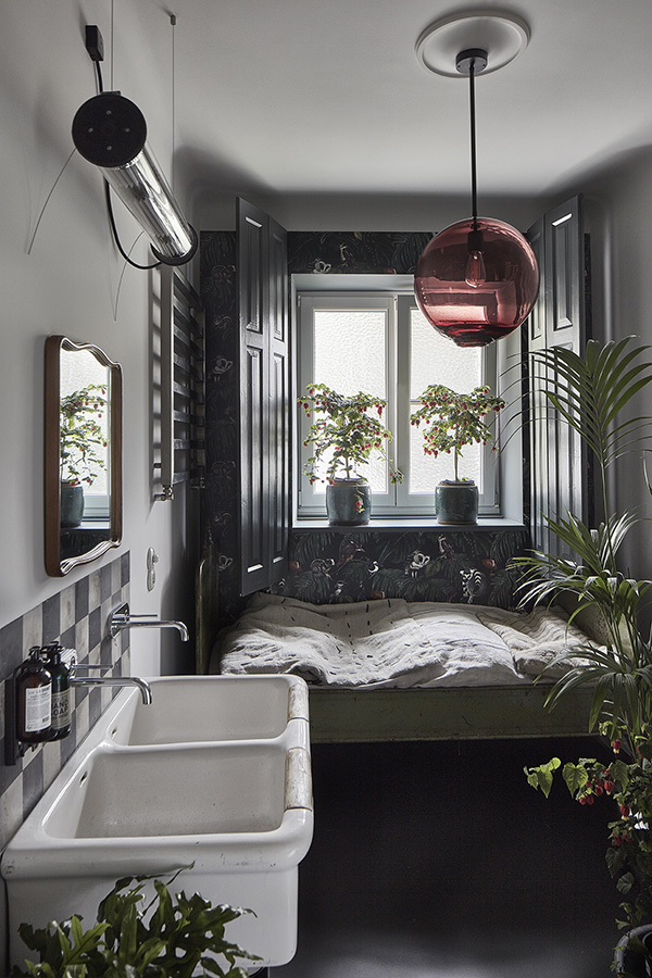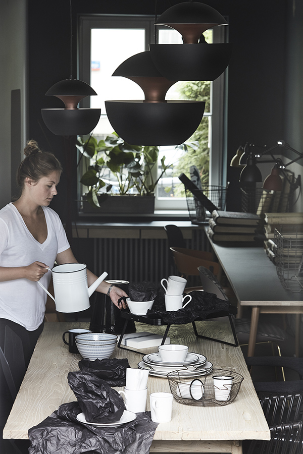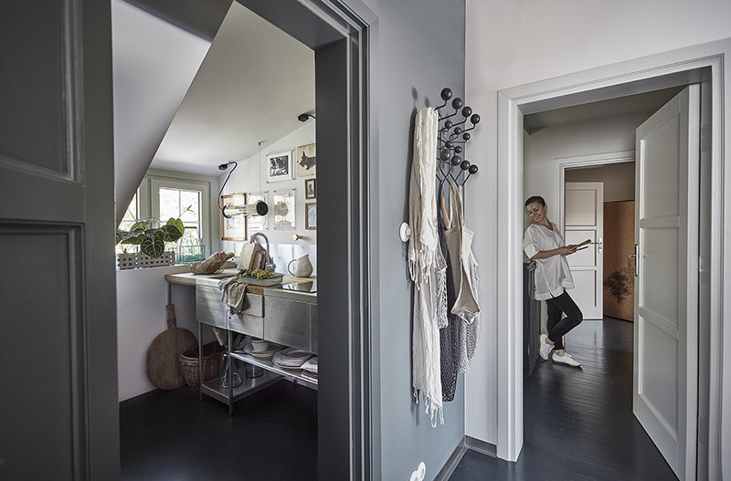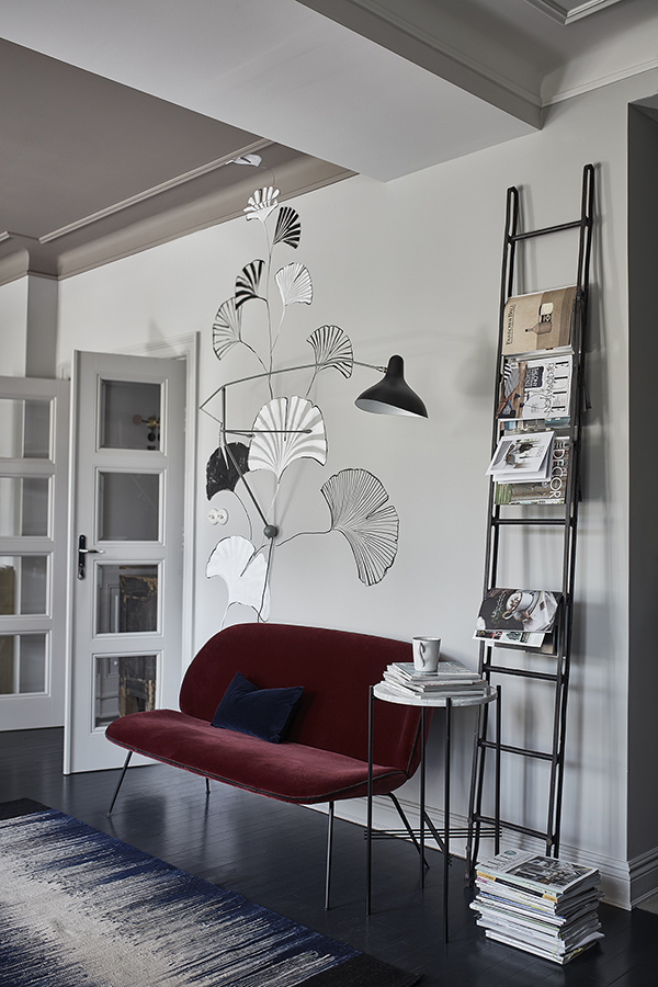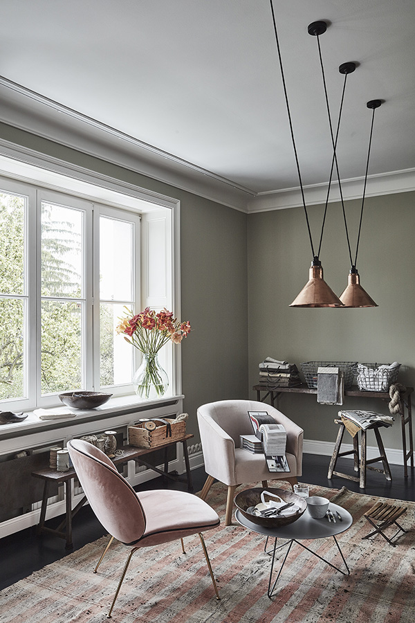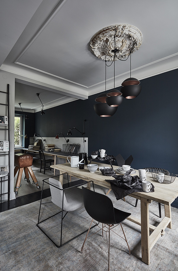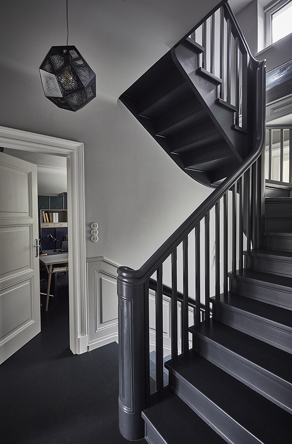 On Sunday I featured some work by NAP from Poland. They also sent along photos of their architect’s showroom and workspace and I am absolutely blown away buy this space. Dark colours, a mix of vintage and modern, original architecture (original window joinery, doors, jambs, wooden floors and layout of the rooms were preserved in the renovation)…it’s a style I always gravitate towards. NAP decided to paint the wood floors and stairs dark, and this led to shades of grey, graphite and peach used throughout. All furnishings and accessories are available through their store – a mix of Vitra, DCW Editions, Gubi, Carl Hansen, Tom Dixon with EMU, Fatboy and Fermob in the garden space.