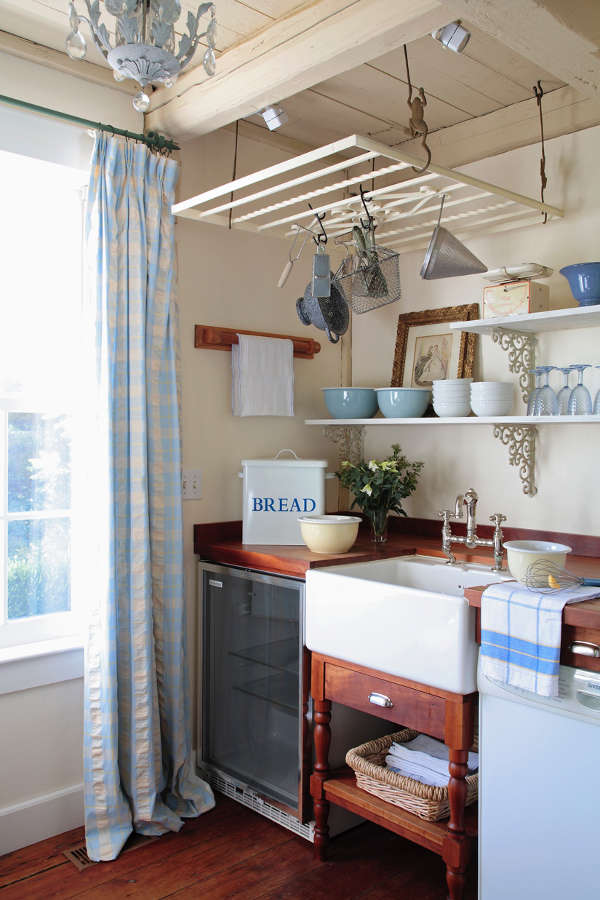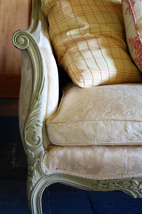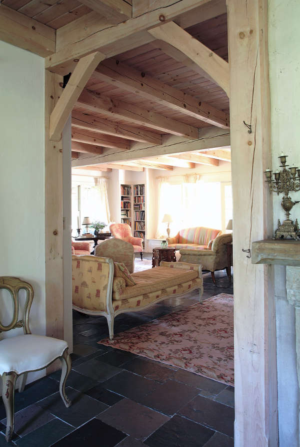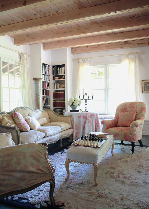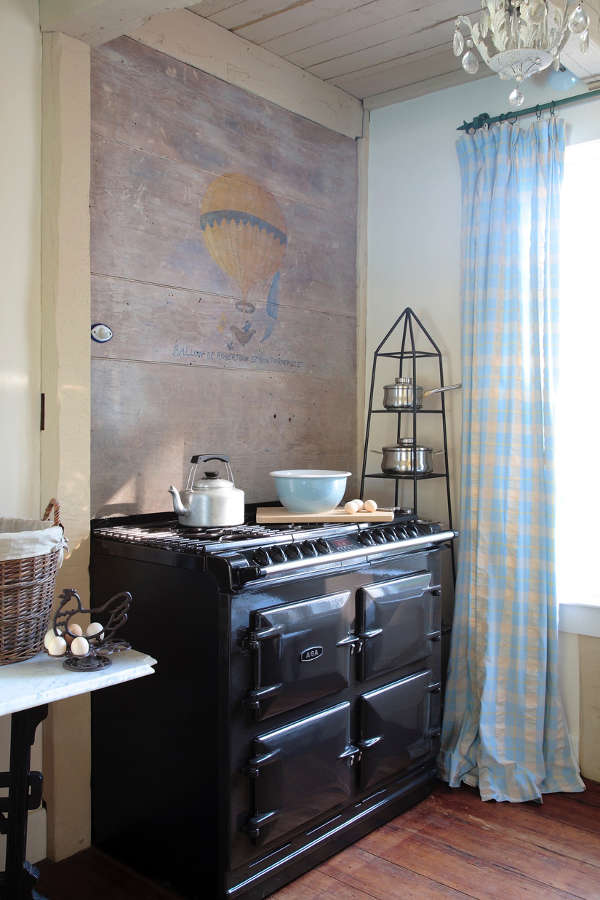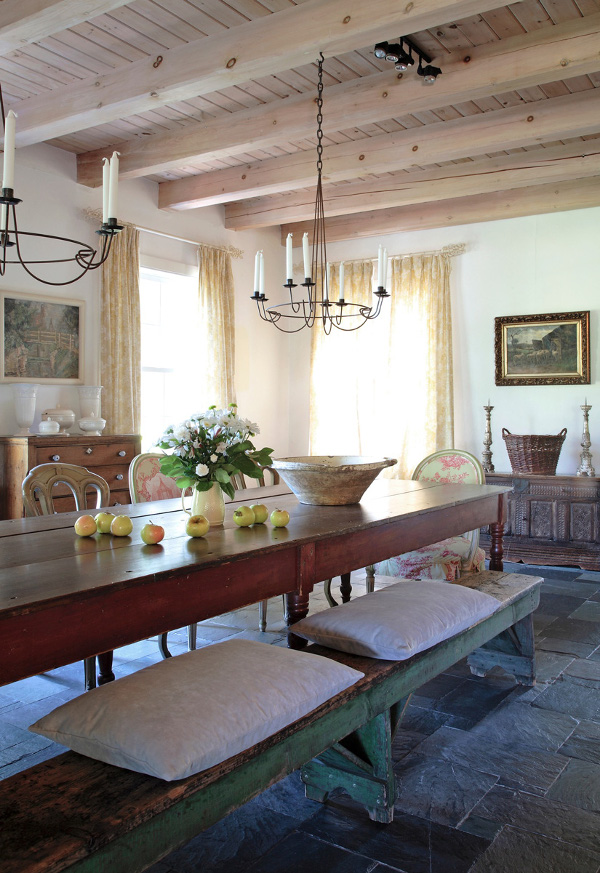 A charming country guesthouse with bare beams above and stone floors with Aubusson rugs underfoot. Think over-plump down-filled pillows on French Provençal chairs to lounge in, scrubbed long tables for dining and everywhere something pretty to catch your eye. Not my usual choice but then a bed and breakfast should be an escape from the everyday urban grind. Interior styling by Susan Burns.