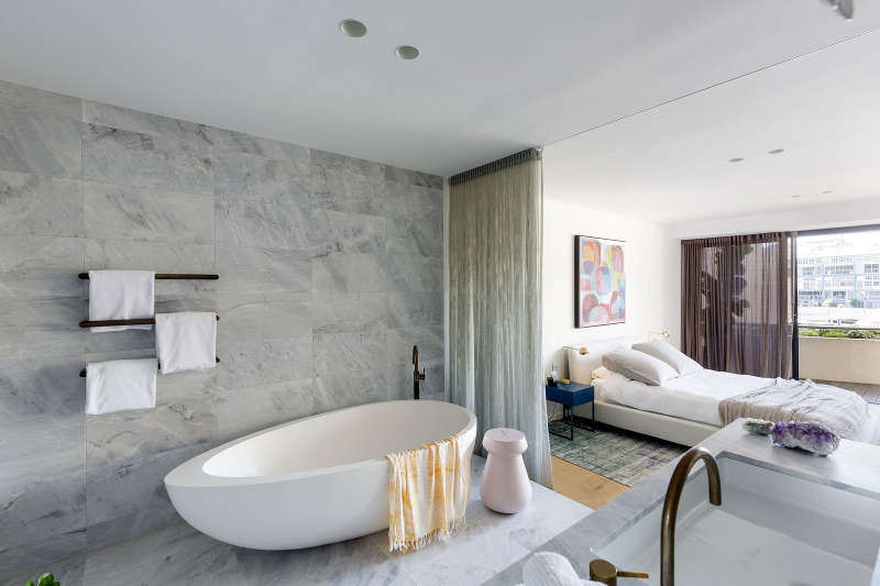 I’m in Sydney, right on the harbour, stalking another apartment by SJB on the market with a price guide of $5 million. As they say “location, location, location” and I’ll add “stylish, stylish, stylish.” Light filled with pastel hues, lime-washed timber floor, whimsical, subtle and serene, a sugar coated almond. (You may remember the apartment from this post.) I wonder if the Navy vessel is included in the price? Guess not. Link here while it lasts.