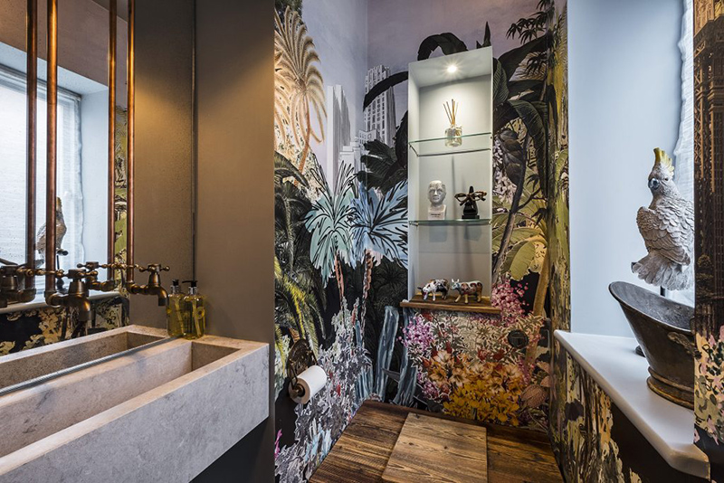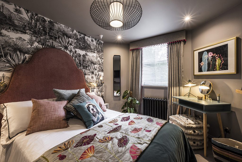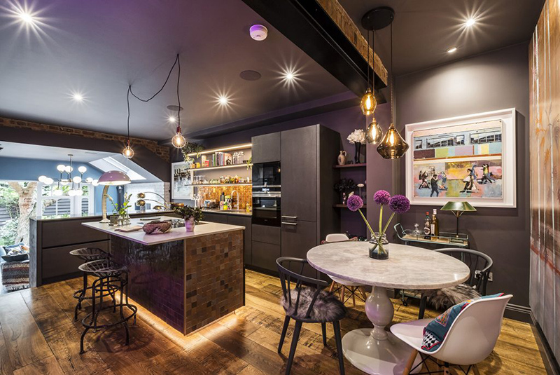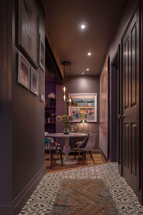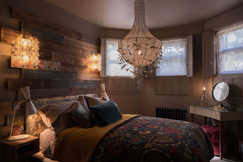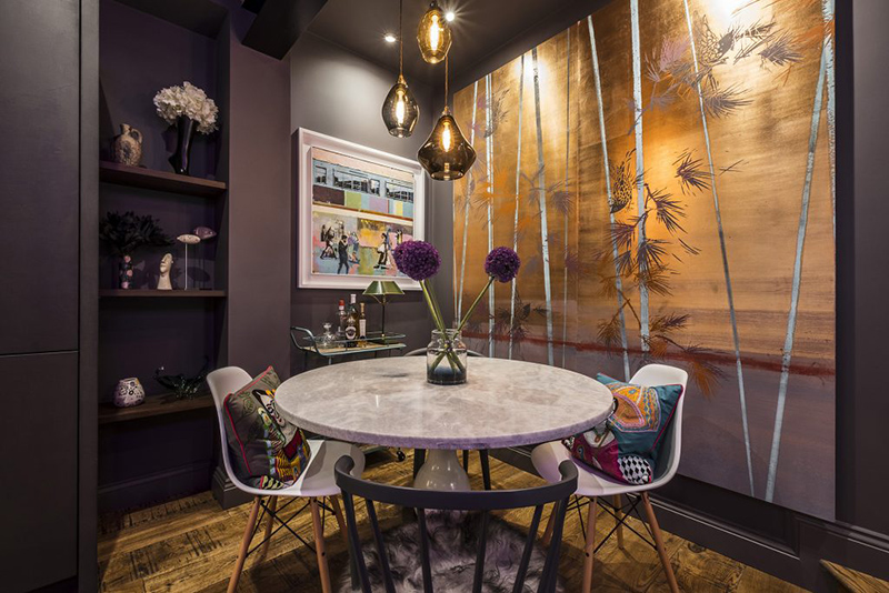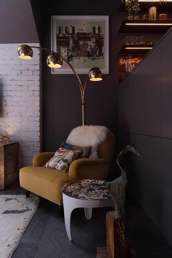 I am so grateful Sue Miller of Mad Cow Interiors contacted me because I am absolutely in love with her dark, eclectic style. Sue is a colour, pattern and texture enthusiast (her home was featured in Abigail Ahern’s book Colour) and this is very evident in this North London boutique retreat project. I don’t typically lead off a post with a bedroom but in this case it is the icing on the cake. The path was cleared for Mad Cow to collaborate with a specialist to relocate & redesign the kitchen. We added bathrooms you’d want to melt into and created storage solutions without compromising the flow of space. The sunken living room was extended and dug out to create drama out of those awkward Victorian half landings and in keeping with our signature style, every room featured different floor finishes and striking wall treatments. We designed & decorated reclaimed barn wood into bed headboards and had the furniture custom made specifically. On top of all this, we layered curated art & vintage finds selected from various travels and we used photographic prints framed from our own collection of work. The finished result has all the luxury of a boutique hotel but with a characterful homely touch. With its crisp Egyptian Cotton bed linens and towels, its complete range of dinner service, crockery and utilities. Every inch of this home is to die for!! I love it Sue!!!