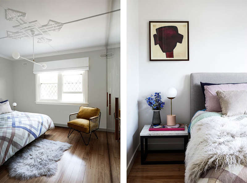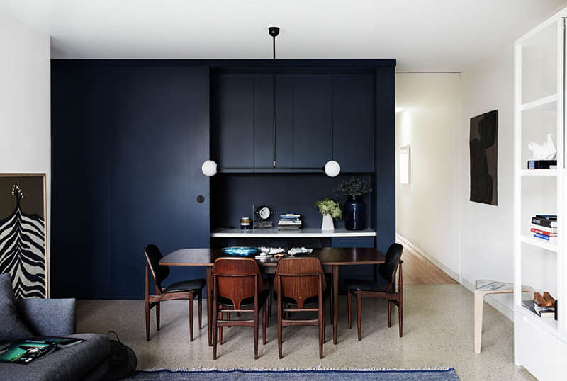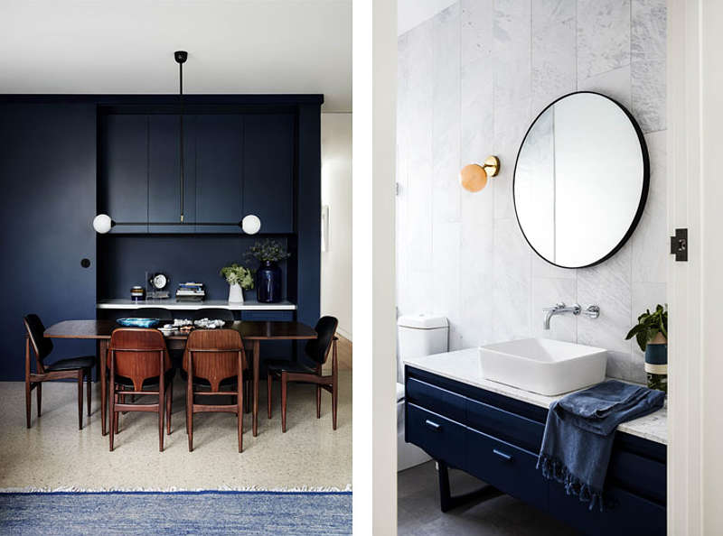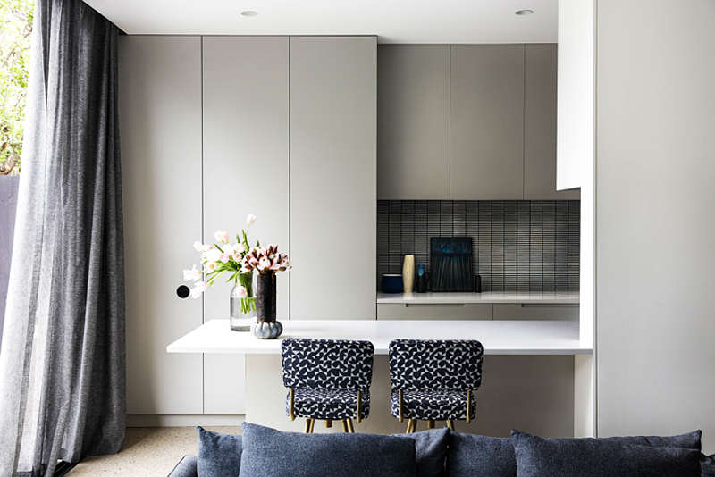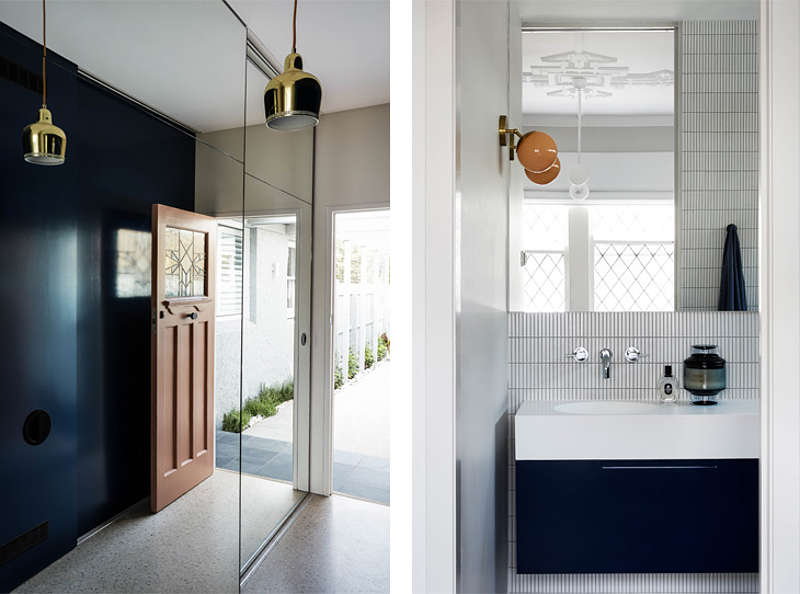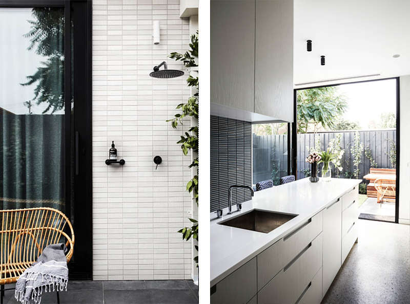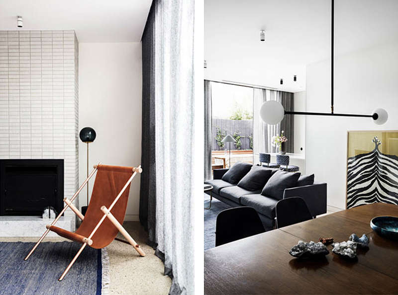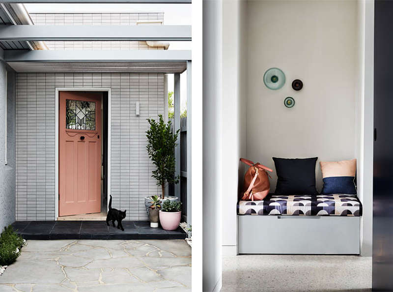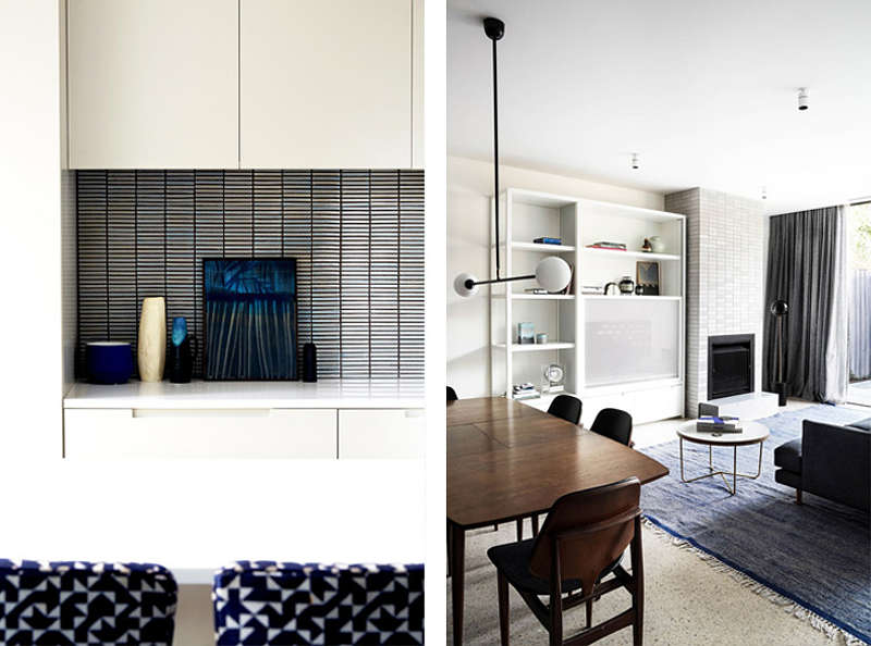 Take a two bedroom Art Deco era house that has seen better times. Give the old girl a well deserved makeover with a spacious modern extension. Take care to marry the old with the new. Final result? A stunning family home with a sophisticated colour palette of black, white and blush. I love the repetition of the stacked tile motif. South Yarra Residence by Full of Grace, Interiors by Therese Carrodus.