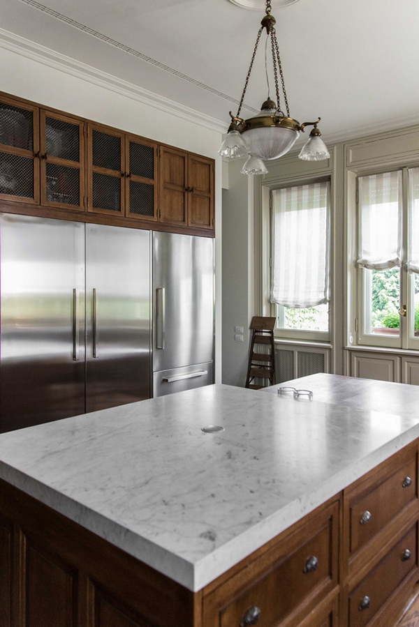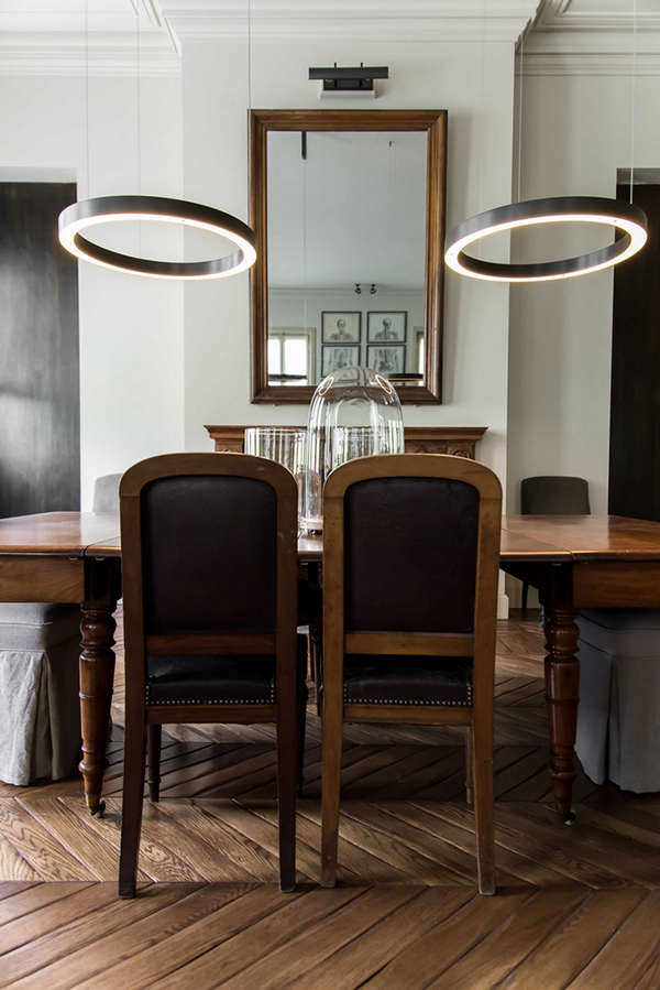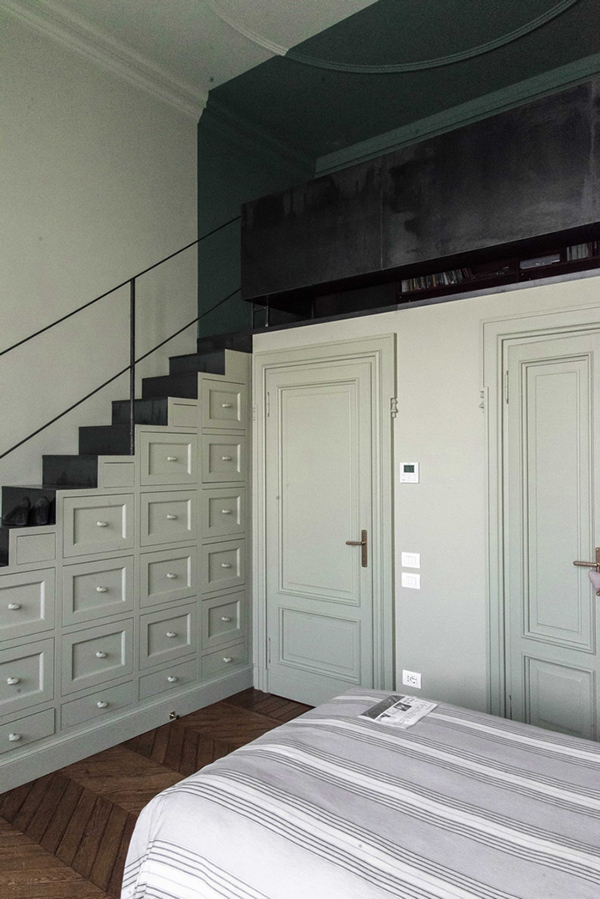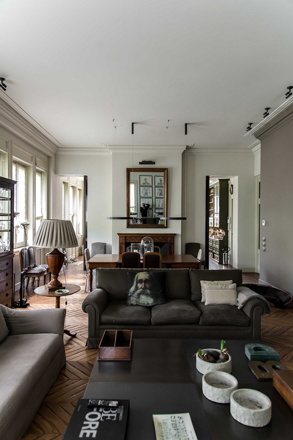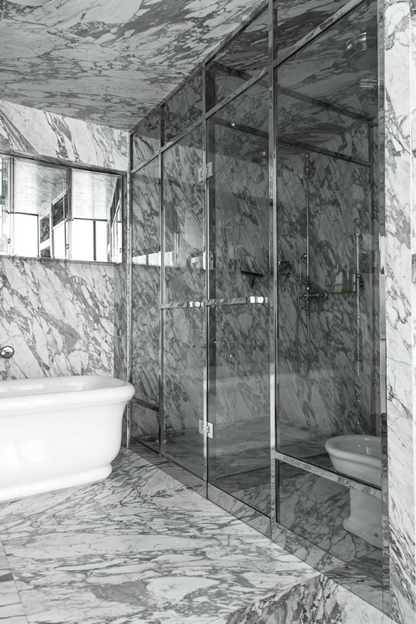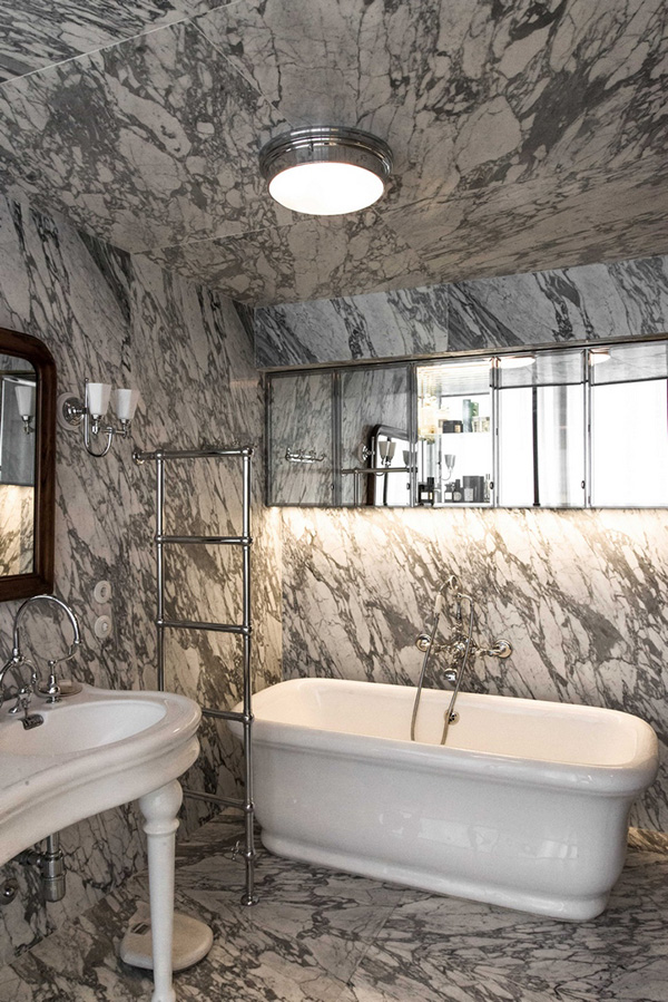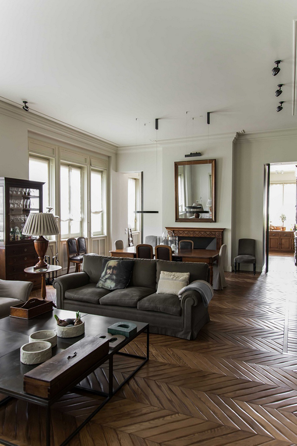 I found this exquisite apartment in Milan by interior designer Paolo Badesco and had to share because Europeans always seem to know what to do when it comes to architecture and not following rules. There is nothing trendy about this apartment and that is why I love it. Also, THOSE CHEVRON WOOD FLOORS. AND THAT MARBLE BATHROOM. WOW! As an aside, I can’t stop laughing. Did the dog in the photo above eat the trim on the door and this is his guilty face?