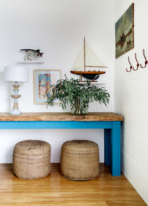 A joyous play on colour and pattern, vinatge and new, this MacMasters Beach home by Sydney-based Brett Mickan Interior Design is definitely not your typical beach house. Oh the clichéd nautical and fish motifs may make an appearance here and there but their presence is a tongue-in-cheek reference to holiday living by the sea. This house is all about family fun in the Aussie sun with a nod to your grandparents’ beach shack from the 60s combined with modern, casual living.
