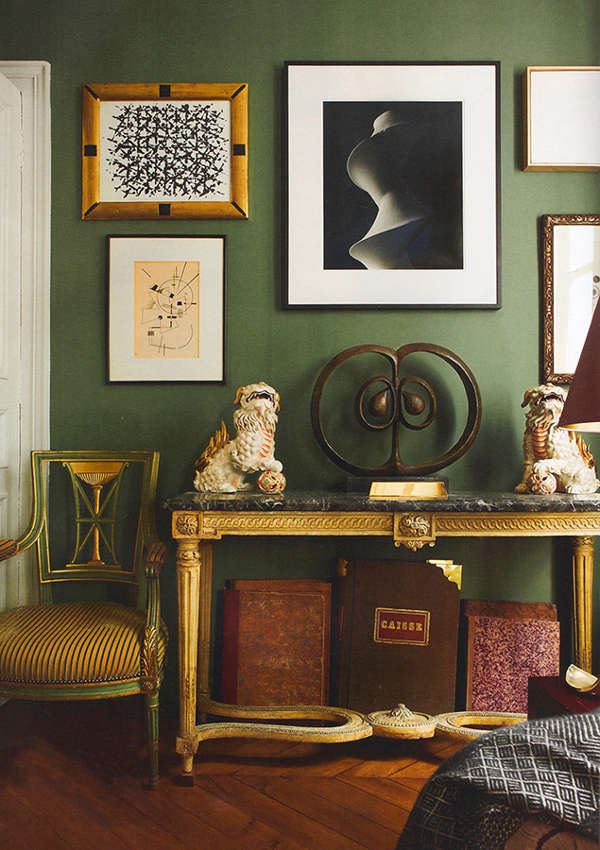 Here is another eclectic home by Black Parrots Studio but this time it is mid-century mixed with 70’s tropical!!! The theme becomes much more subtle beyond this crazy cool dining room (that plant/leaf wallpaper looks like it has been there for years) but all of the spaces are fun and dramatic whether in bright or dark colours.