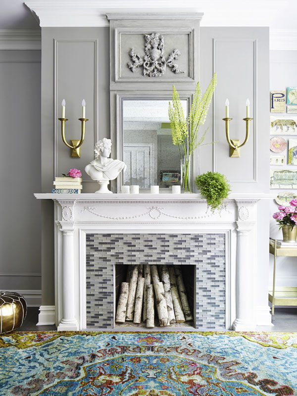 Love the fireplace and the Chanel nº 5 frame 🙂