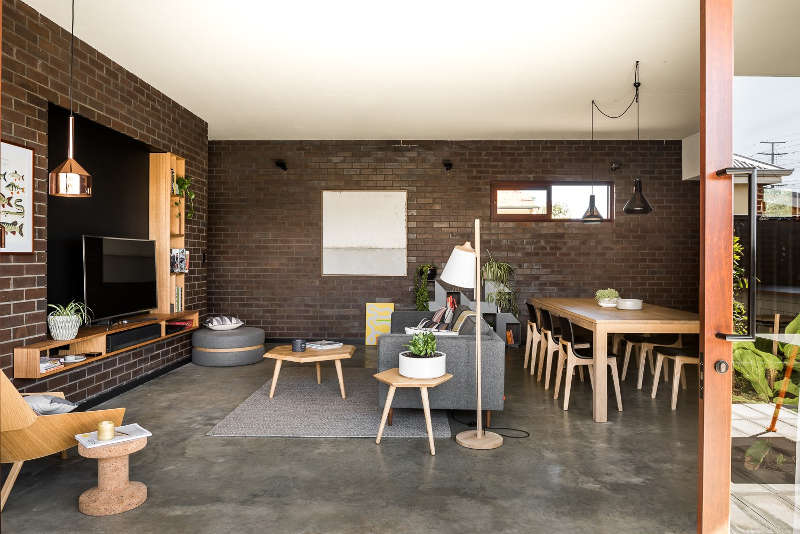 While it does work out in the garden, the chocolate brick STILL looks heavy and light-sucking in the internal spaces. Just imagine each wall covered with plain white render and suddenly the rooms open up and become bigger and brighter.