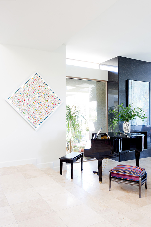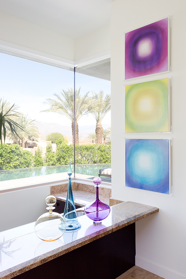 As seen in my last post on designer Jenn Feldman‘s style, this talented lady and her team seem to have a thing for bold, modern art in modern settings. This new Palm Springs project is yet another example of this. It is bold and makes a real statement. I must point out that I am totally crushing on that banquette dining area.