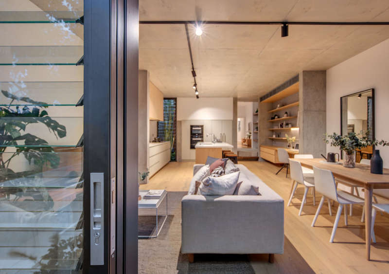 An early 1900s two bedroom single-storey semi-detached house has been reimagined with alterations and an extension by Sydney-based CO-AP Architects. Maximising daylight and green space were the priority and a materials palette of off-form concrete and Australian timbers was used. The sense of space and light is evident but it’s the stairwell that’s the hero of the renovation… oh and the bedroom with its retractable wall of windows and elevated planter is hot too.