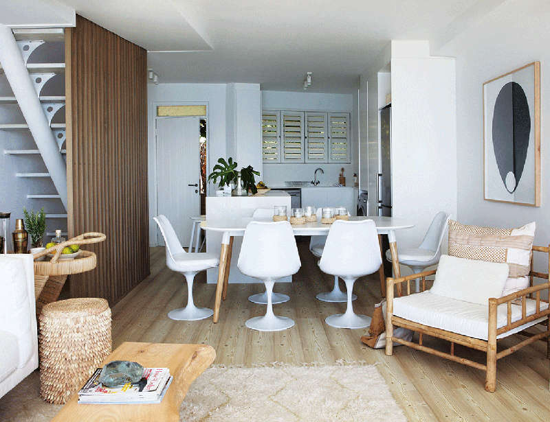 A small apartment by the sea with white done right. Natural, organic elements, layers of texture, light streaming in and that view. What more could you want? Perhaps the keys to the front door of this Cape Town, South Africa home. By Michele Throssell Interiors.