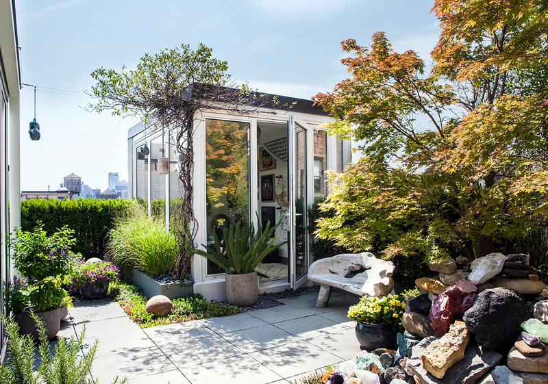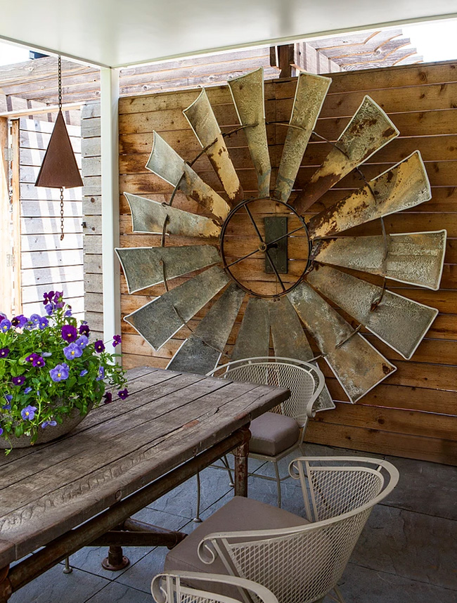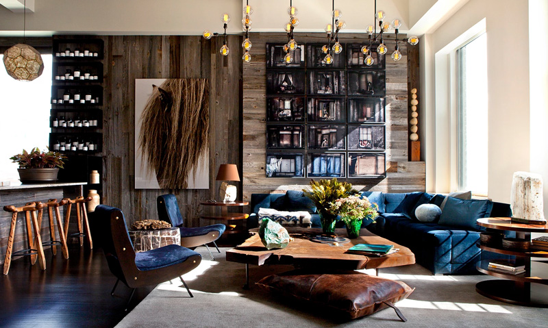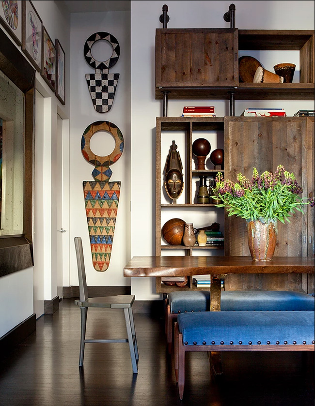 The roof garden, the tub, that wall unit in the dining room! Love it all. Sometimes the reclaimed wood can be taken too far, but I think this is well done, especially using a wide variety of woods. I'll be staring at this one for a while 🙂
