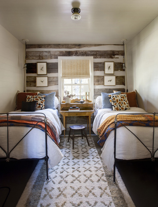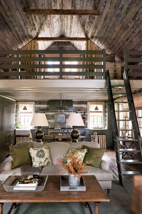 Tammy Connor‘s impeccably curated traditional style transformed this charming log cabin with the most beautiful weathered wood into an absolute gem. Tammy’s approach of taking such a rough, rustic structure and making it look so refined yet comfortable is quite something. I adore everything about this.