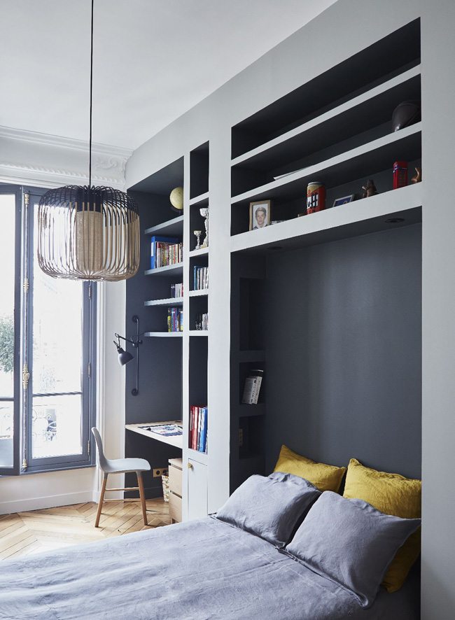 It appears I just can’t be stopped when it comes to the designs of GCG Architectes. This is another Paris apartment that has me all hot and bothered. Wonderfully unique use of colour and wallpaper that seems to be their trademark. And those chevron hardwood floors!! Photos: Robin Petillault