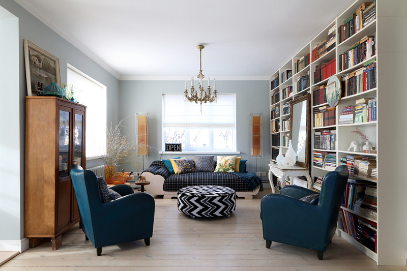 It has been quite some time since we shared a project by Latvian interior designer Natalja Radchenko. It was great to hear from her recently when she sent us photos of a new project of hers. It is a Soviet-era home outside Riga, Latvia. Icky brown painted floors, dingy wallpaper and ugly ceilings were once horrible features in these spaces…