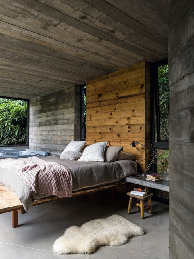 Most people think living in a concrete house would be cold and unwelcoming. I think that can be true depending on the climate. If it was a home with lots of glass nestled in the hills of Rio de Janeiro (as opposed to nestled within snow in the middle of a Canadian winter for example), like this home, I think it would be wonderful. This is home on weekends to designer Alessandra Clark, her husband Nuno Franco de Sousa (both of Mameluca Studio) and their daughter. With mountains and trees seen through all the windows, rustic wood furnishings, I think this is far from cold. Via Casa Vogue Brazil. Photos: Fran Parente.