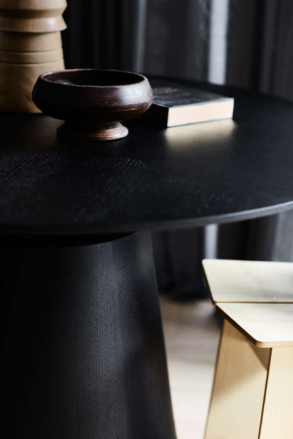 “A space that is unexpected and asymmetrically balanced using an installation of beautiful objects, the South Yarra Residence maximises every aspect. From the moment you step inside this considered home, a stone ledge and polished plaster niche immediately welcomes you. Curved walls complement the asymmetric nature of the apartment and open up the dining area to create a feeling of space.”