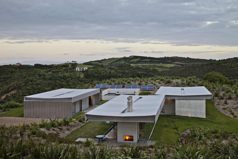 If there is a heaven on earth then it must be in New Zealand. On a ridge above Matiatia Bay a series of concrete pavilions farewell the setting sun. Rough and monolithic meets soft and luxurious. Manmade meets the beauty of nature. Shelter meets spectacle. If this truly is a slice of paradise then I could sit in the sunken lounge for eternity and drink in the view. Island Retreat by Fearon Hay Architects and Penny Hay.