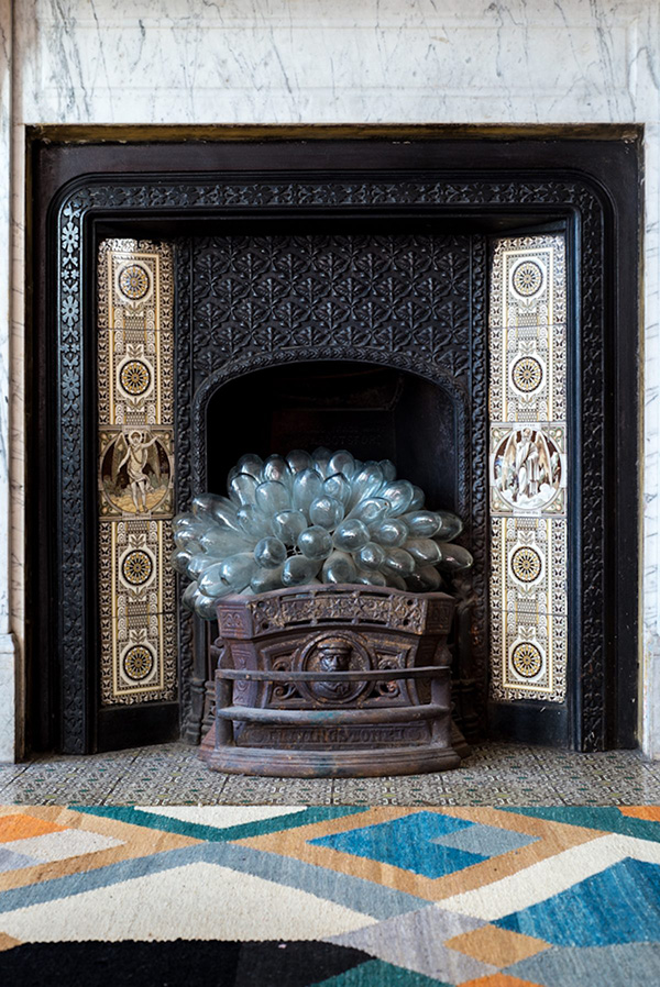 The glass bulbs in the fireplace. Love it. Is this DIY or an art installation? What a house. It's exactly what I want my 1890 home to look like.