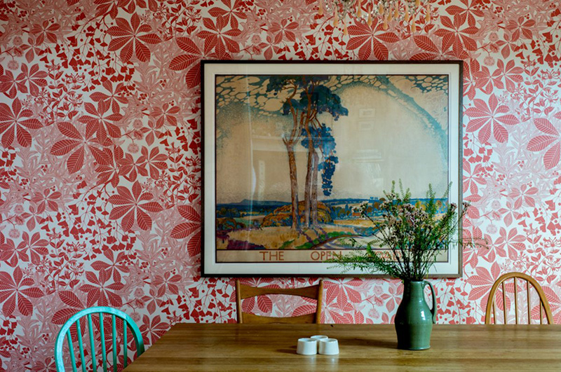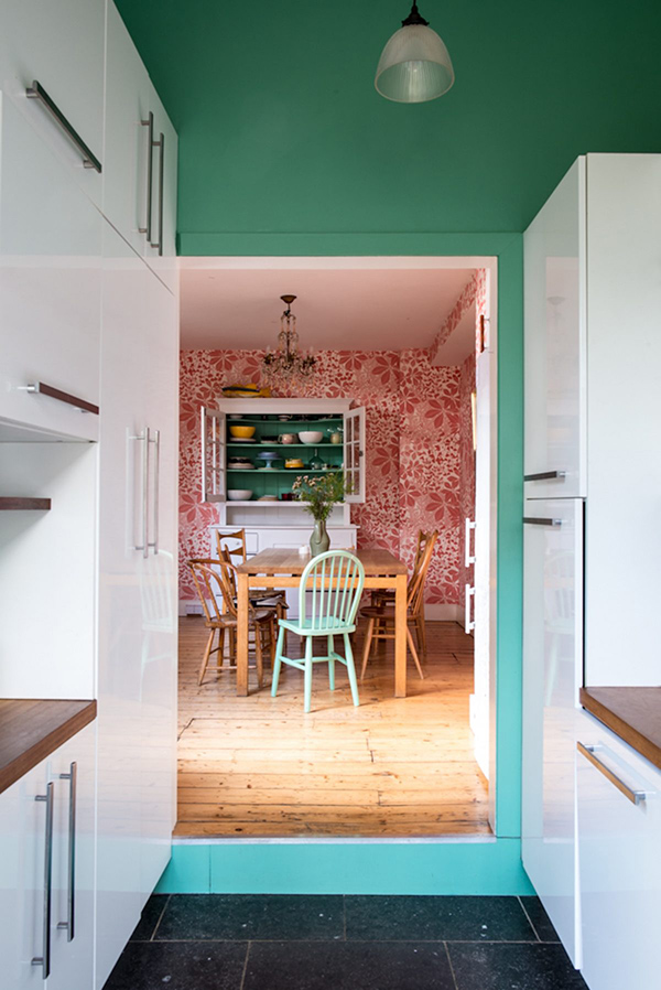 Gosh, I love this home. The Marthe Armitage hand-printed wallpaper in the dining room is to die for—especially seen against that magnificent green in the kitchen. Swoon!
