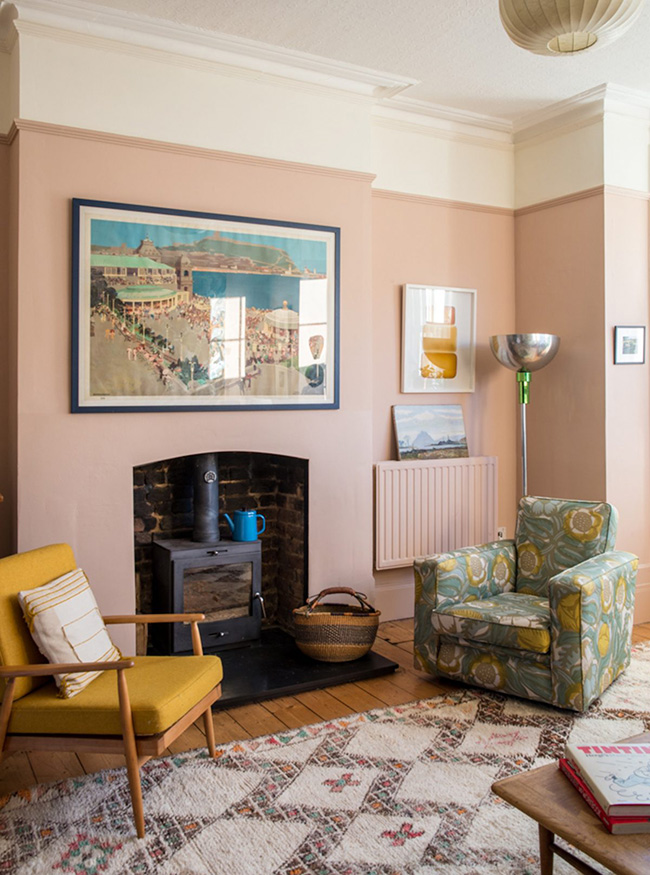 I love the eclectic and cozy vibe of this Victorian terraced home in London with its random mix of decidedly vintage furnishings, pink/peach walls and fun wallpaper. Fun, functional and family-friendly. Available as a location home through Shoot Factory.