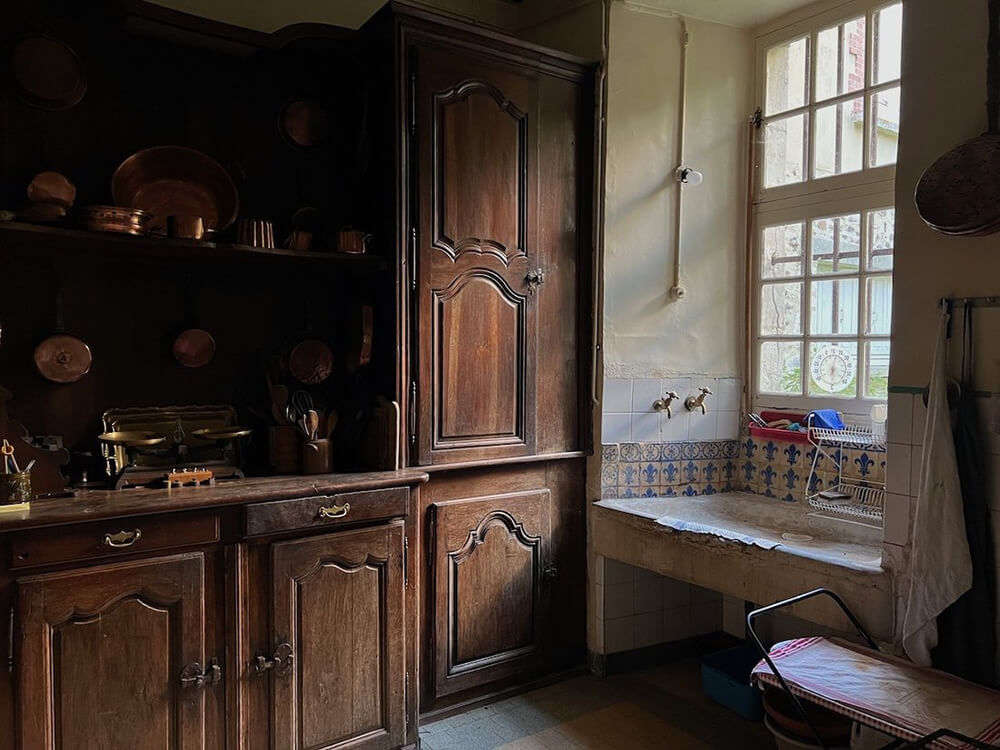 This stunning castle was built in the 16th century and modified several times over the following centuries. It is located on the edge of the forest of Bellême, with a view of the village of La Perrière, on 6 ha with many outbuildings (caretaker’s house, service lodges, dovecote, bread oven, barn…), including a watchtower! And I am head over heels in love with the kitchen. That sink!!! *sigh* For sale via Les Belles Maisons for €899,500.