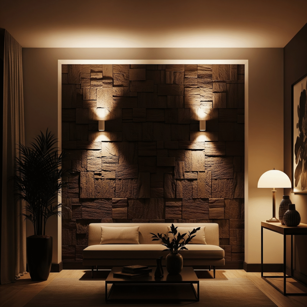 For example, stone cladding takes on new life when lit from above, with shadows enhancing its texture. Similarly, a wallpapered wall can pop under soft, diffused lighting that draws attention to its patterns.