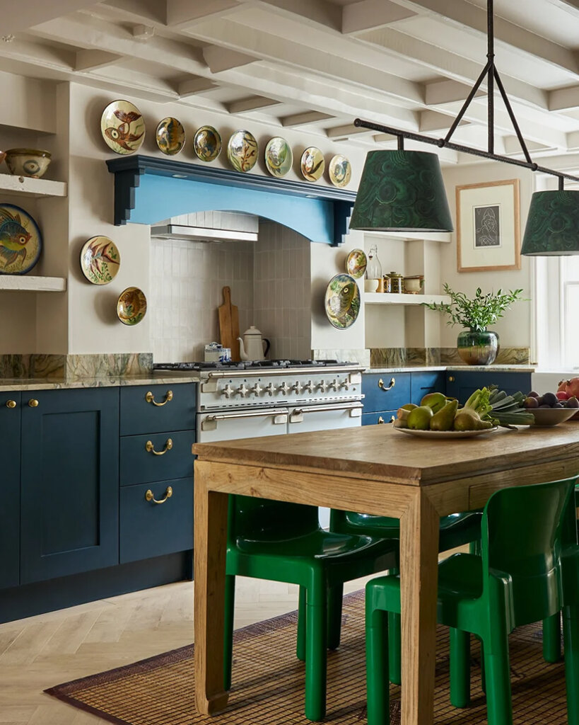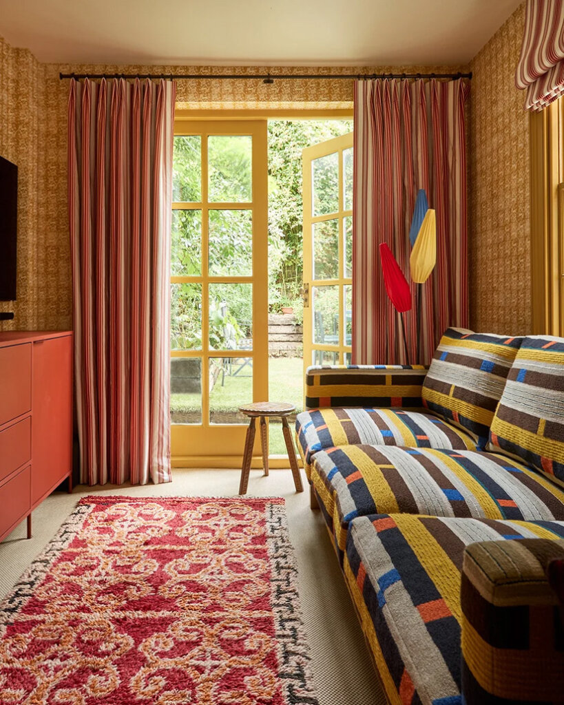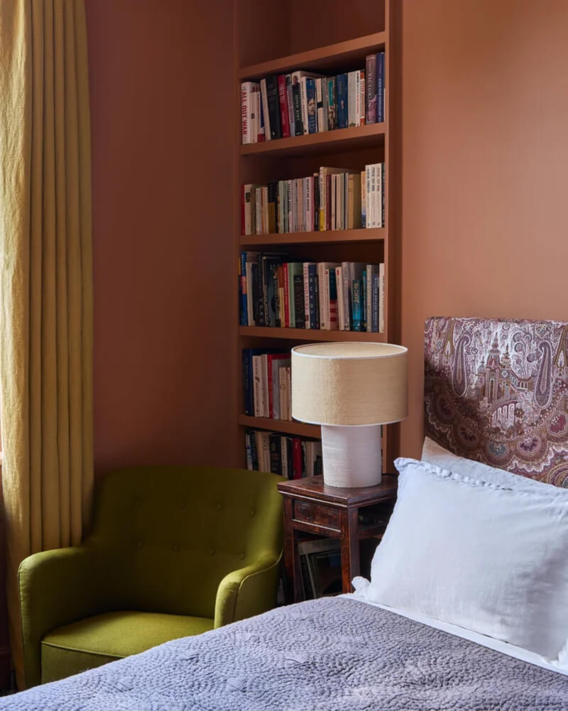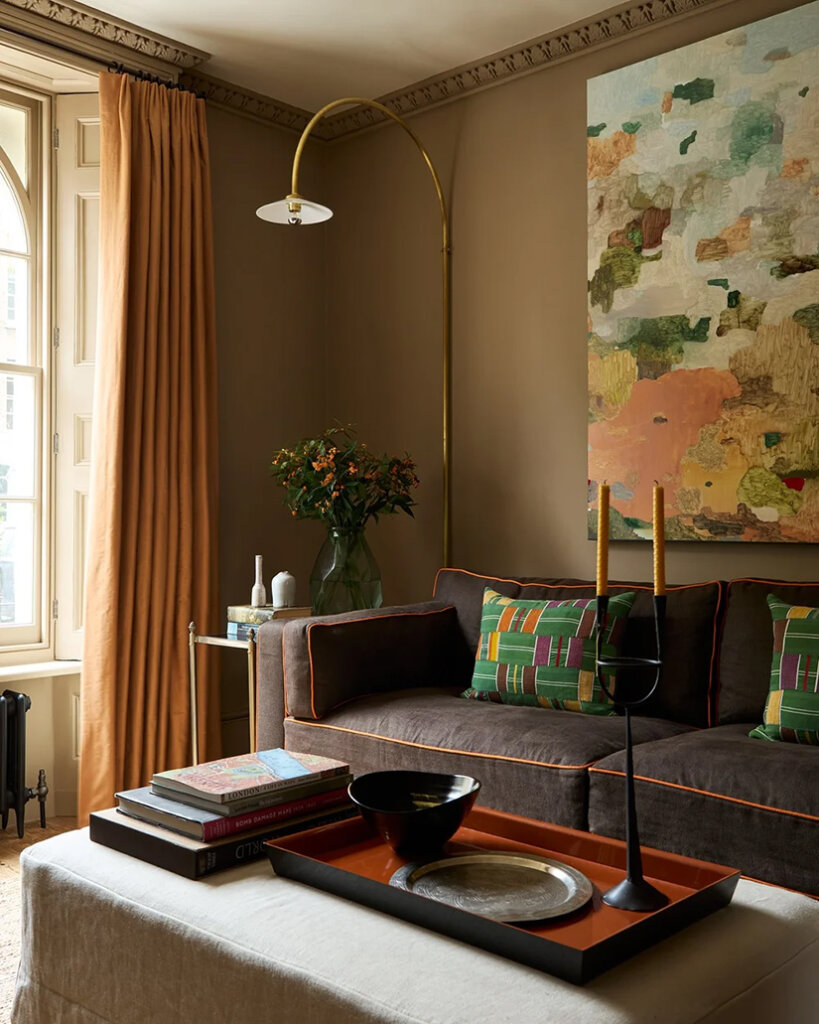 Designer Tom Morris created sophisticated yet fun spaces in this late-Georgian style home in north London. Gorgeous, rich colours in terracotta and dark orange, teal and smoky blue, primary reds and greens makes for a vibrant and moody vibe for the homeowner and his daughters. I love a daring, mostly on the dark side palette like this. It’s like a big hug. Photos: Boz Gagovski.