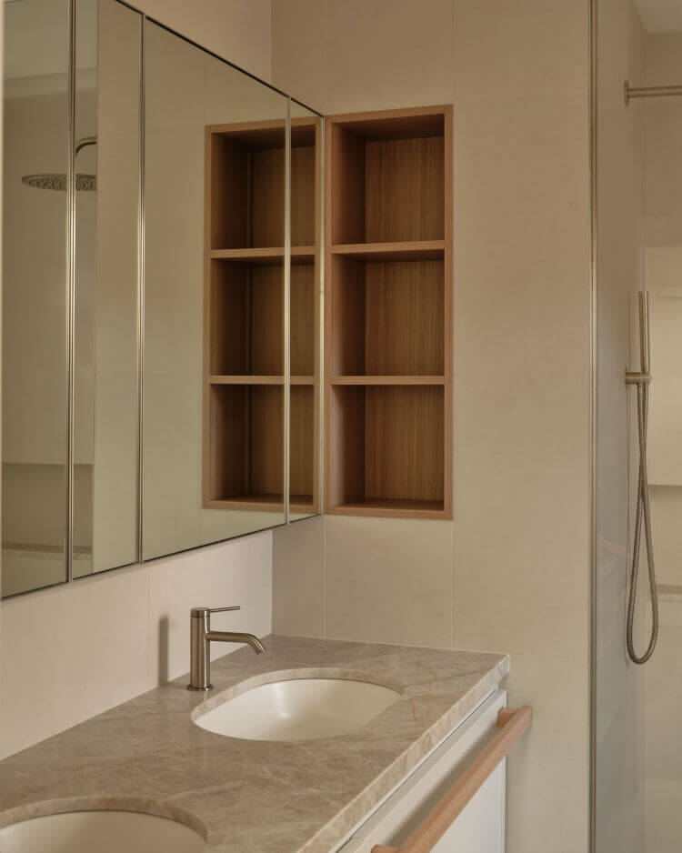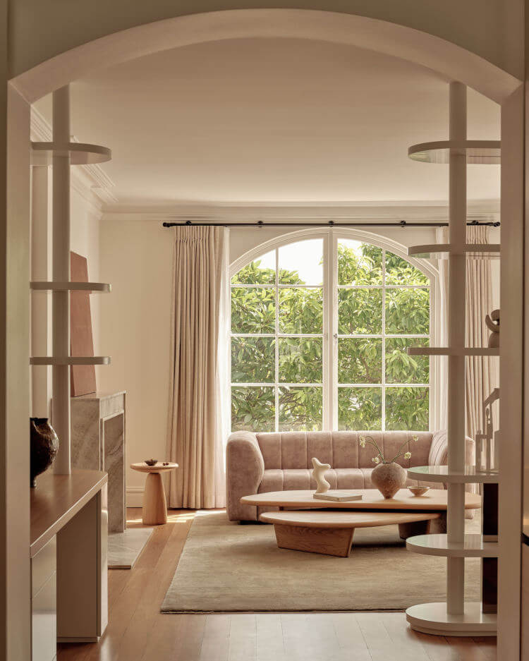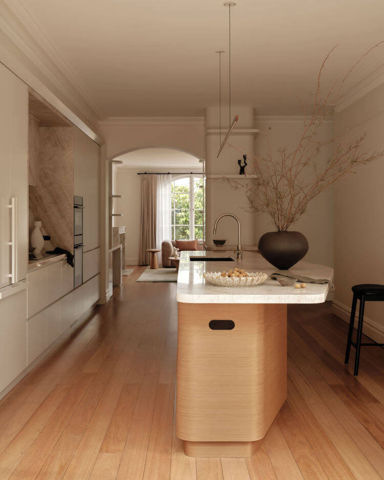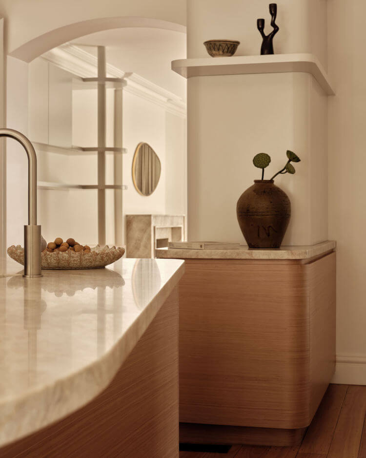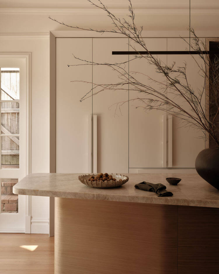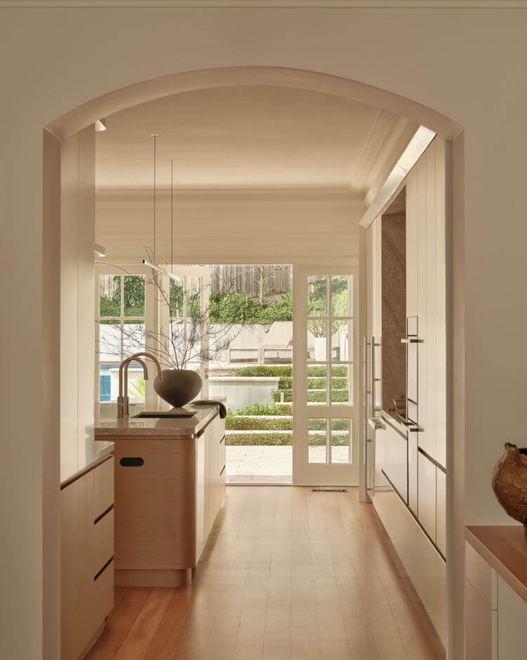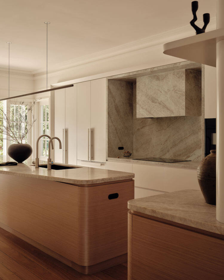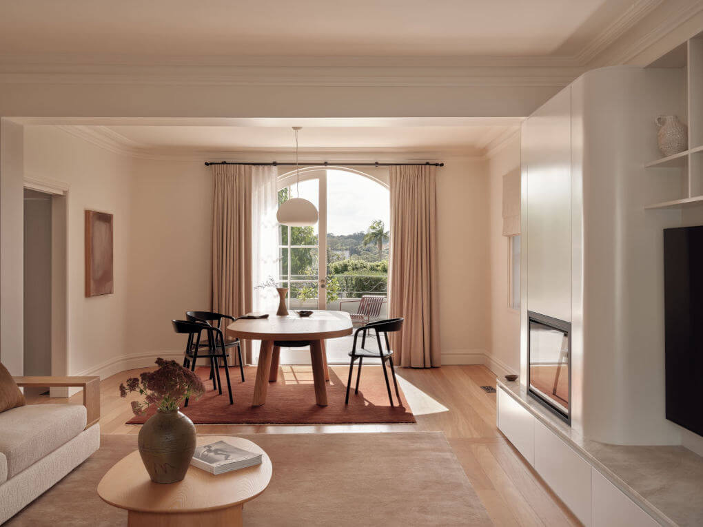 Michiru Higginbotham is a Sydney-based residential architecture and interior design practice that blends Australian openness with Japanese simplicity. Their work balances innovation and tradition, functionality and beauty. Cremorne Deco, an Art Deco residence on Sydney’s Lower North Shore, has been reimagined with a pared-back palette of warm timber, quartzite stone and subtle colour. Original porthole windows and curves were preserved, honouring its heritage while creating a serene, contemporary home connected to the garden beyond.