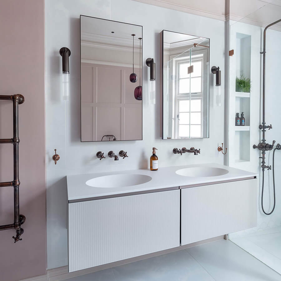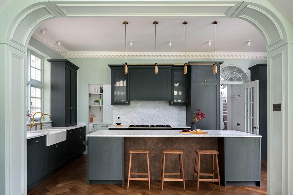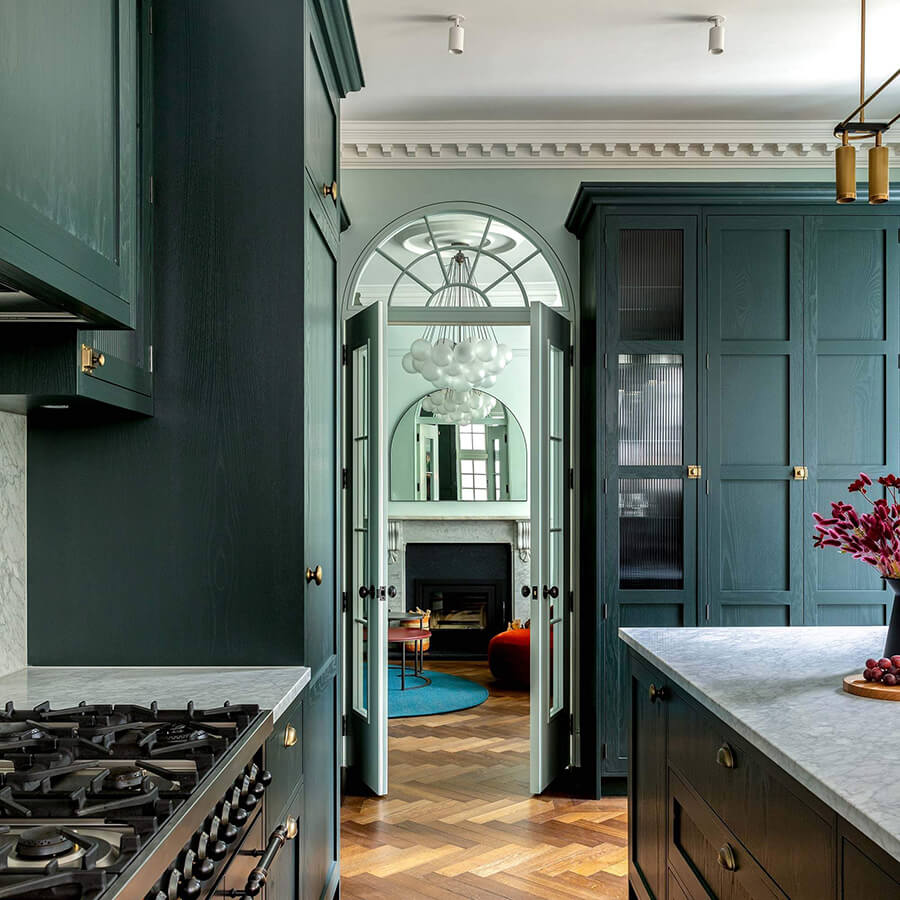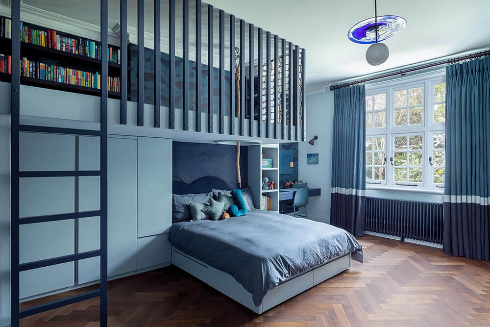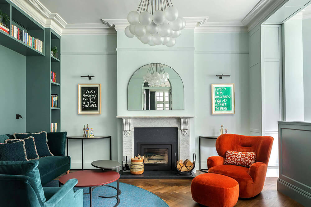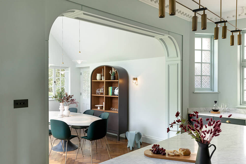 This home required a full refurbishment from top to bottom where the existing space was gutted, and the layout was completely reimagined. The brief was to create something impactful, unique and fun that suited both the adults, and their three children. The space needed to be practical, with plenty of storage and room for the children to grow and have their independence whilst also giving the adults their own oasis of calm in the formal living room and master suite. The client trusted us to create bold and playful schemes in every room which completely transformed the house from a traditional property, to something truly unique. So many of the design decisions in this property are bespoke, and everything about it is personal to the client, resulting in a one-of-a-kind home.