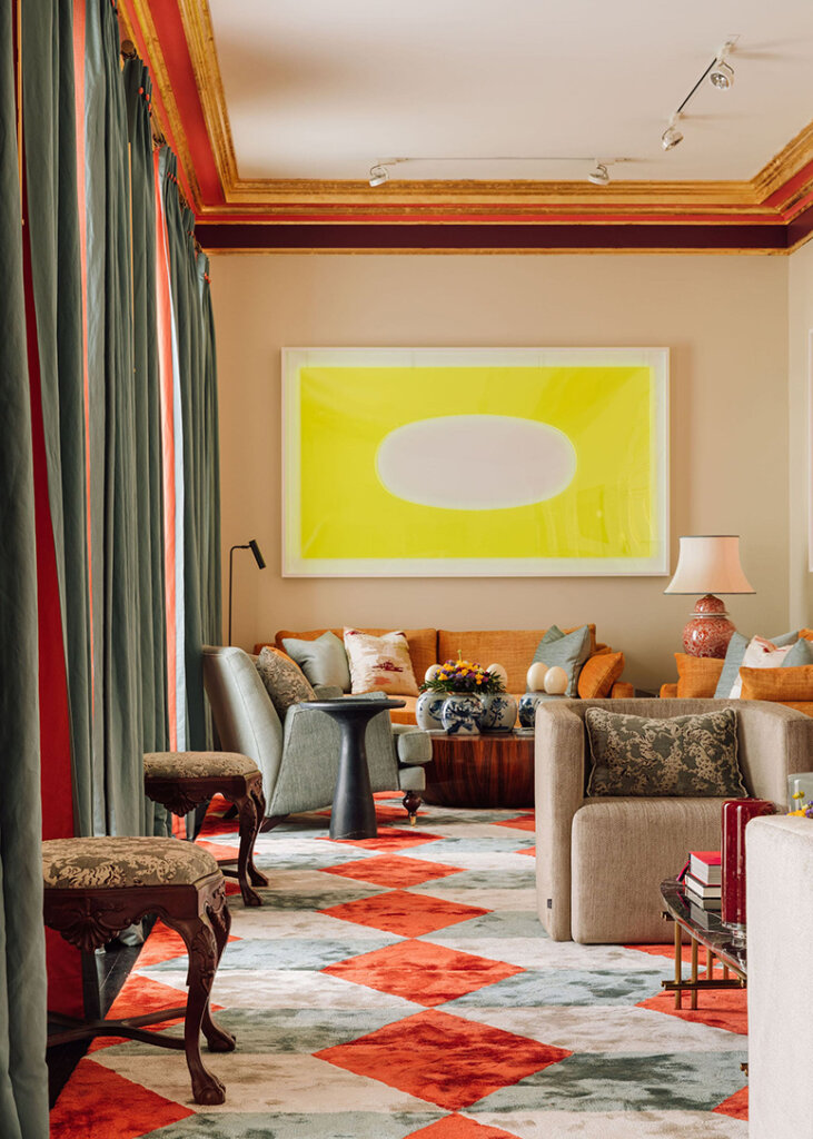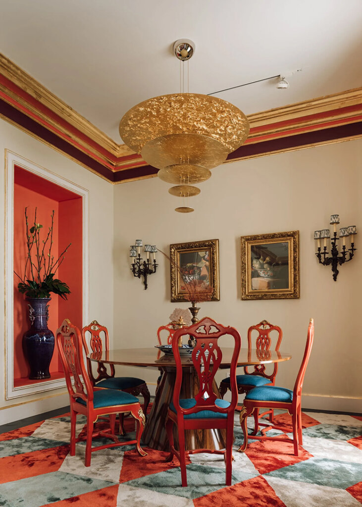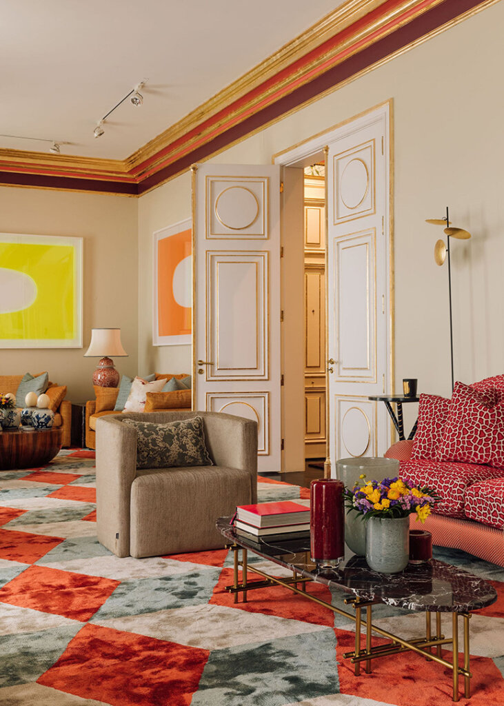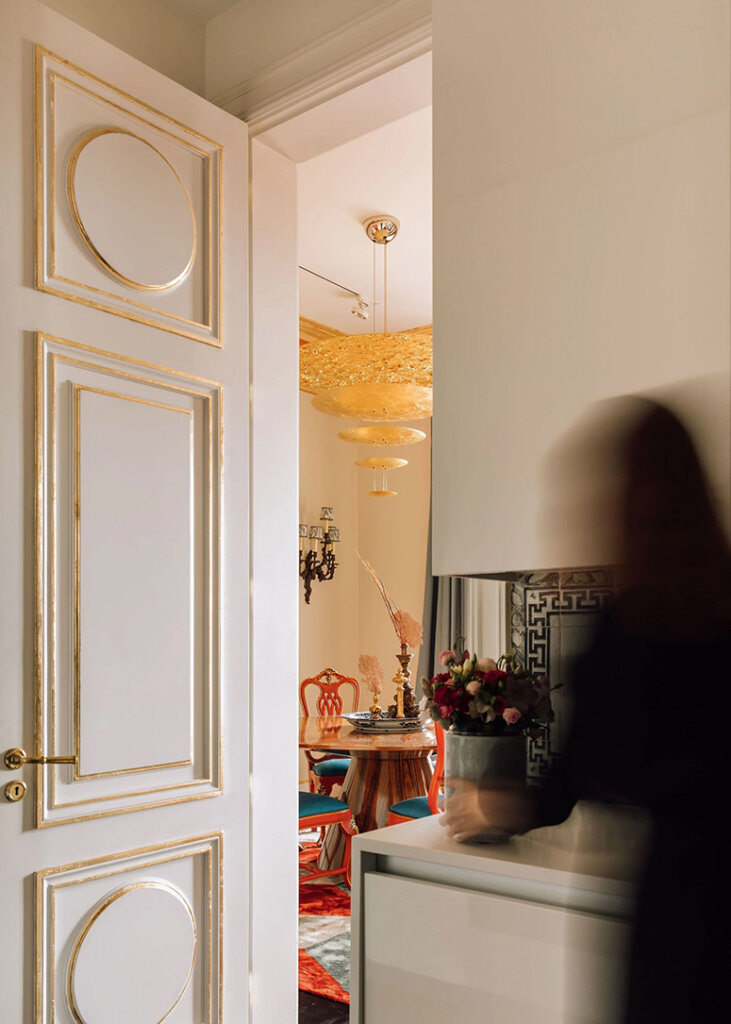 A multifaceted space blending inspiration and cinematic allure, fostering connections between sitting and dining areas. Modern art intertwines with unique installations and chinoiseries, infusing the living space with contemporary flair. The project welcomes guests with vibrant patterns, colors, and surprises in every corner, evoking cheerful comfort.