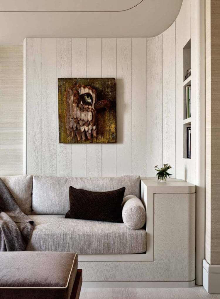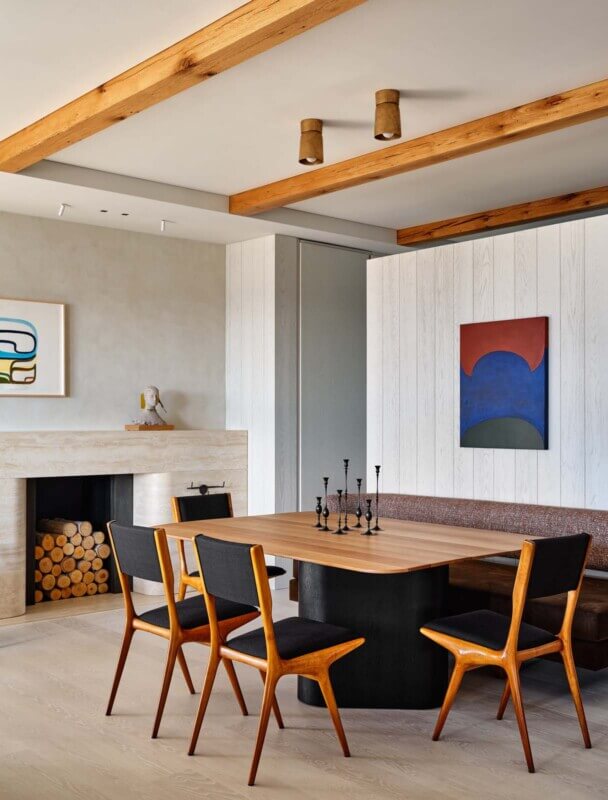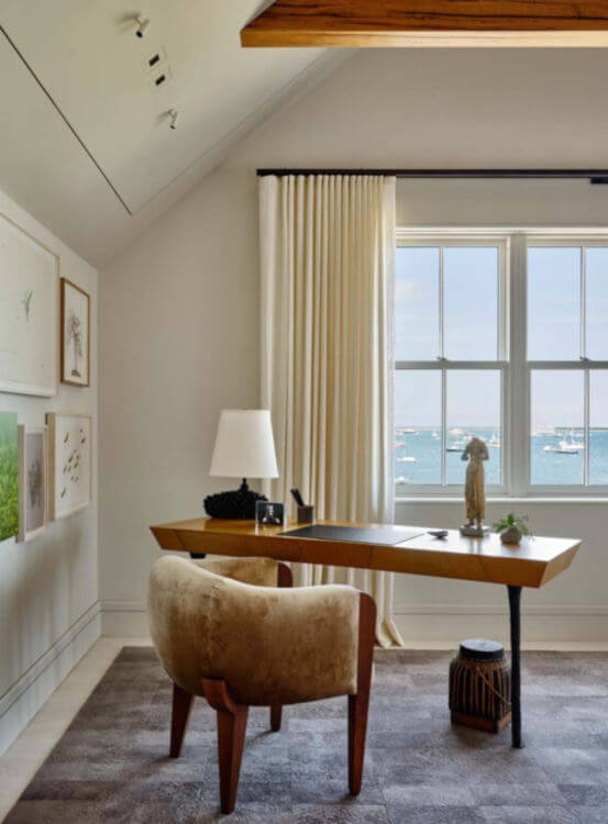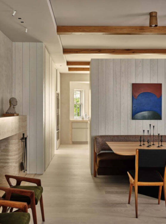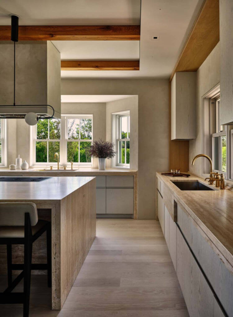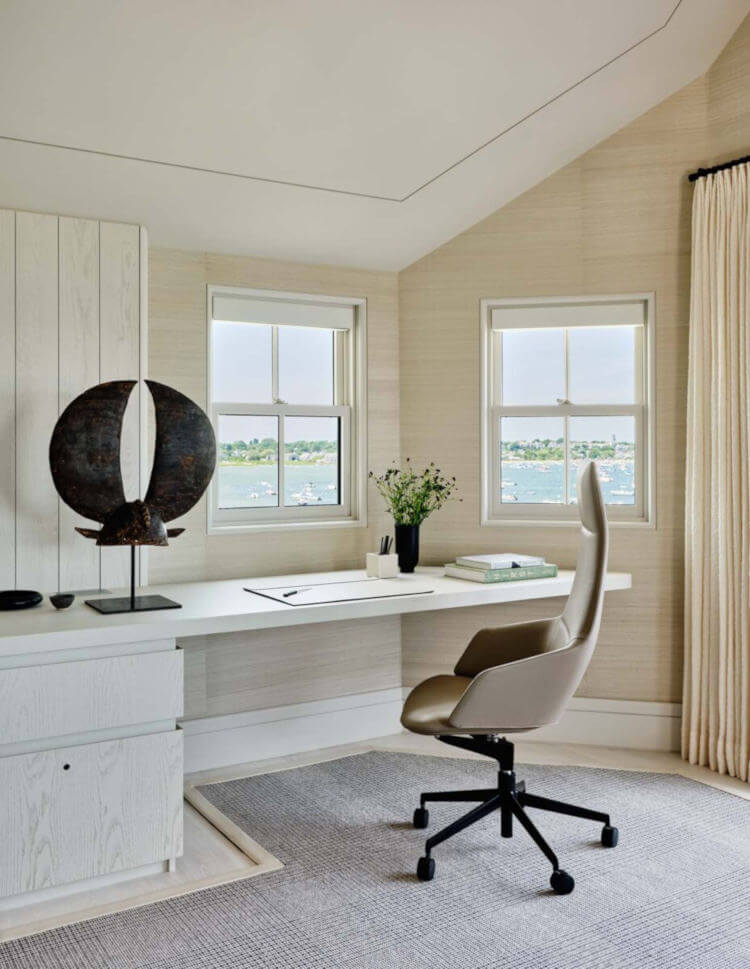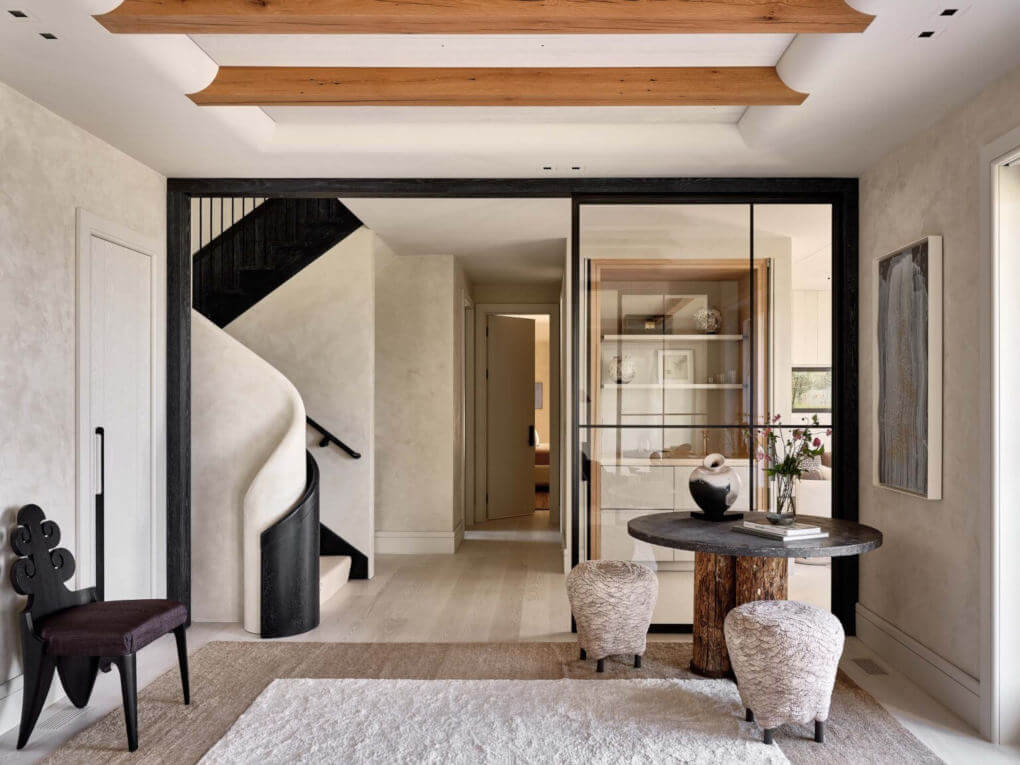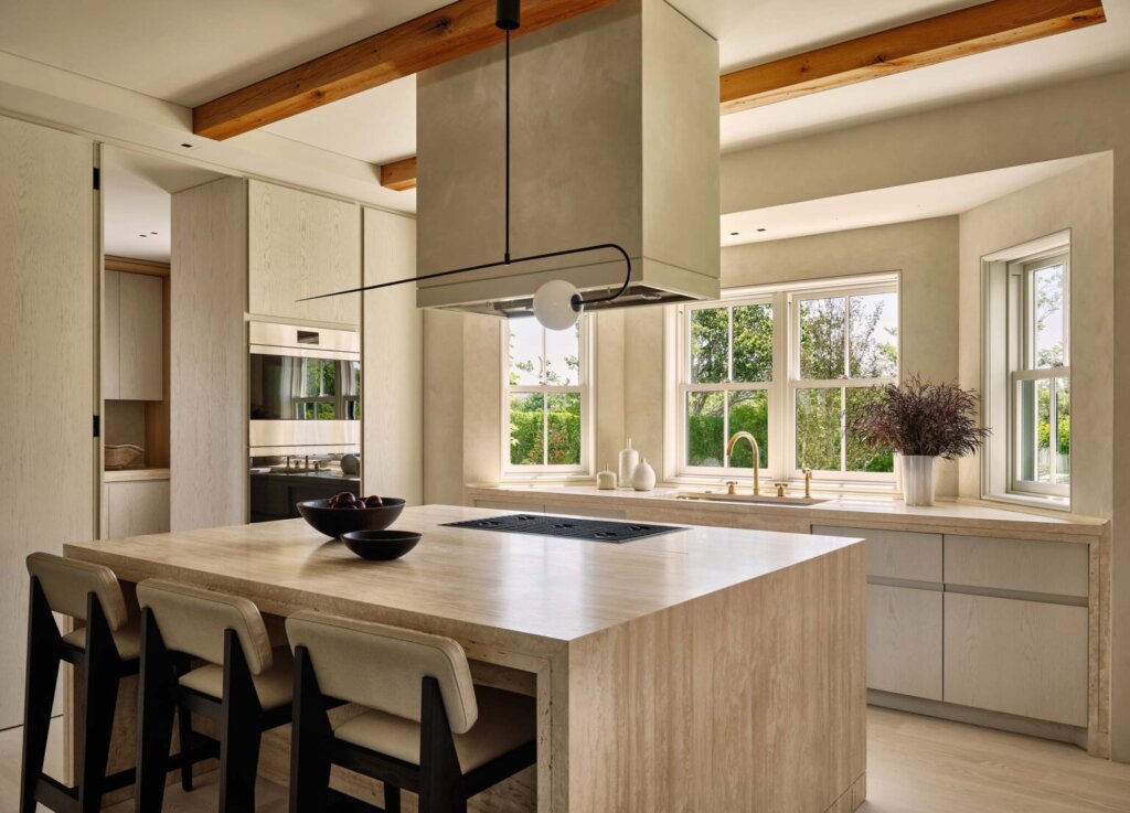 Set on a prime harborfront site, this 1990s Nantucket residence has been reimagined by Workshop/APD as a forever home. The design unifies its original gabled form with a refined, contemporary sensibility, anchored by a sculptural staircase in textured plaster and dark-stained wood. Reclaimed timber, wire-brushed oak, striated stone and steel paneling lend depth and tactility. True to the Workshop/APD aesthetic the home embodies an artful, unmistakable expression of modern Nantucket living.
