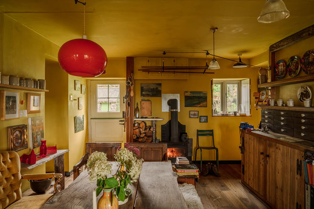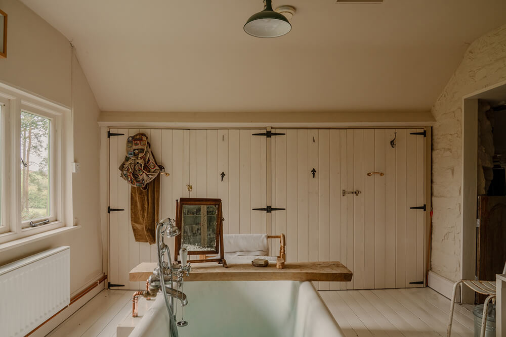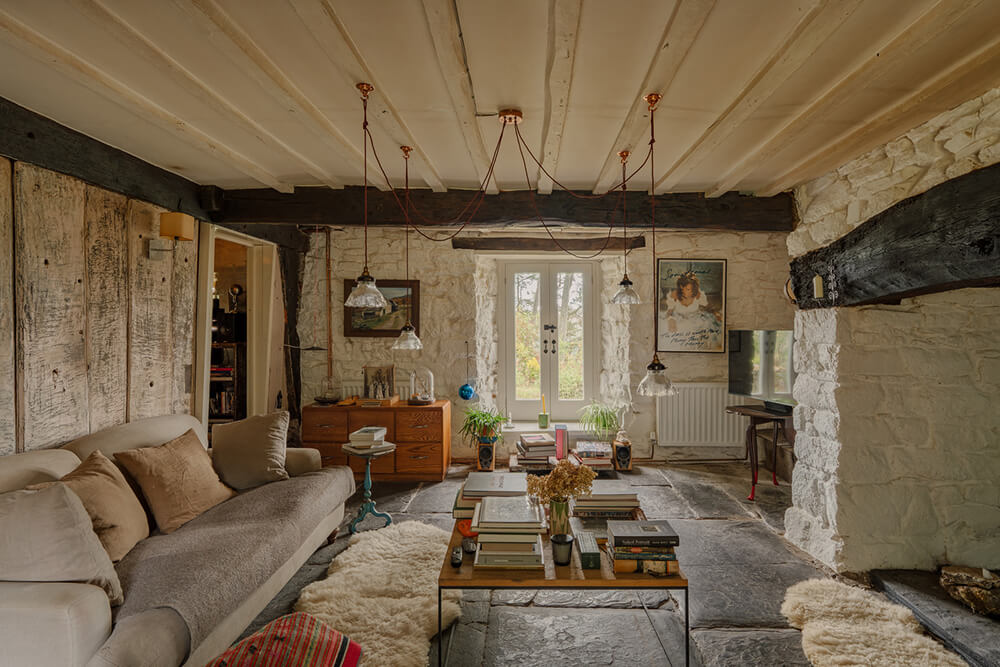 Set in the remote slopes of a Welsh hillside, this beautiful four-bedroom farmhouse has been renovated with great care and sensitivity, pairing its existing 19th-century foundations with elegant modern details. Stone-built and with a slate roof, the house spans over 4,200 sq ft across two storeys. Outside, the house sits in grounds of five acres, with landscaped beds and borders, wild meadowland, and a timber-framed cabin. Although Bwlch Coch, as it stands today, was largely built in the 17th century, parts of the building are thought to be around 700 years old. This includes oak panels in the living room, believed to have been reclaimed from a ship. Later period features include a 17th-century oak plank and muntin screen, and a wide inglenook fireplace. Carefully restored over the course of two decades, the house was stripped back to its original fabric.