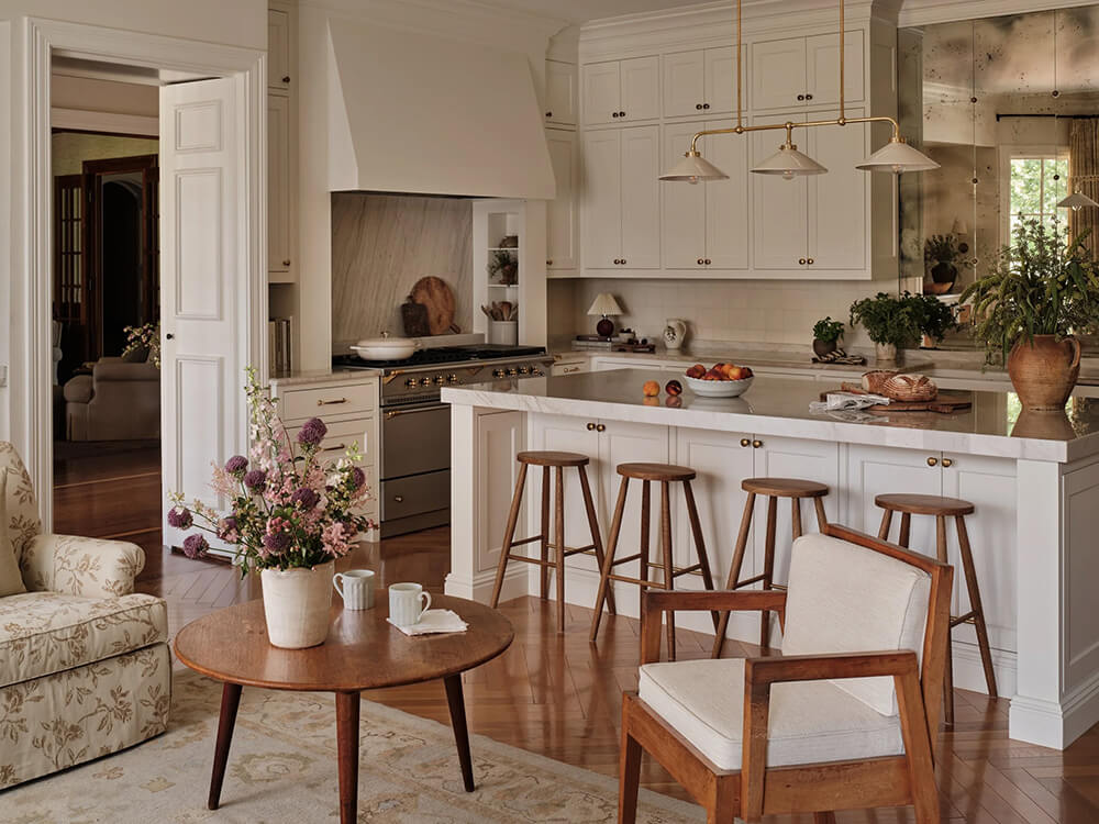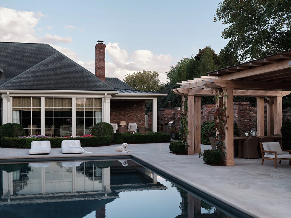 Nashville designer Lilly Taylor not only created a wonderful home for herself as per the previous post but she also had a hand in the one her parents live in (and that she spent a lot of her childhood in). And this house has EVERYTHING. An elegant and spacious foyer/entryway, a moody and cozy study where hanging around with the fire going is a must, a dreamy and classic kitchen (I adore the weird little nook) with adjacent sitting area to lounge while someone is cooking, a stylish dining room with a dramatic bar area, and an absolutely epic outdoor space with pool and brick pizza oven. GORG!!!!! Photos: Joseph Bradshaw.