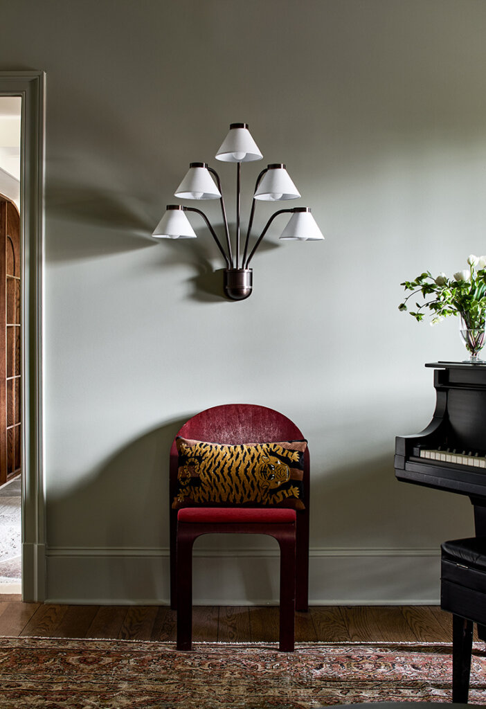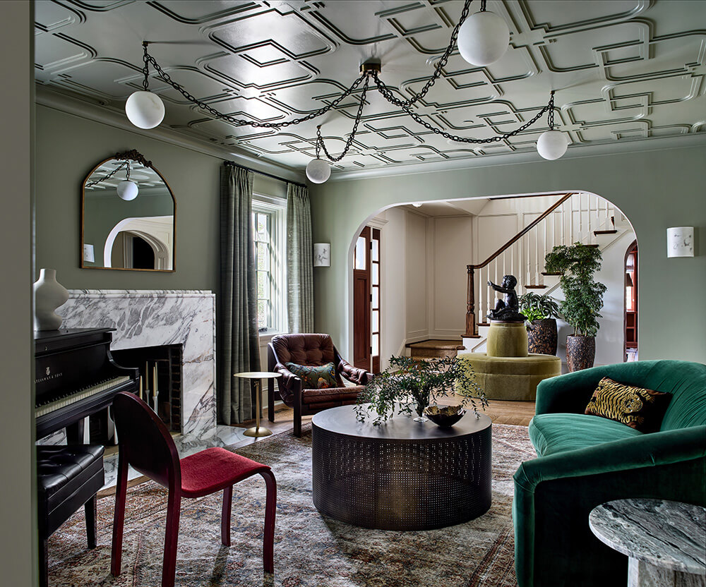 Merging modern furnishings with classic architectural elements, this home exudes bold color, luxurious textures, and antique fixtures, creating a haven of immense comfort and artistic delight at every turn.
