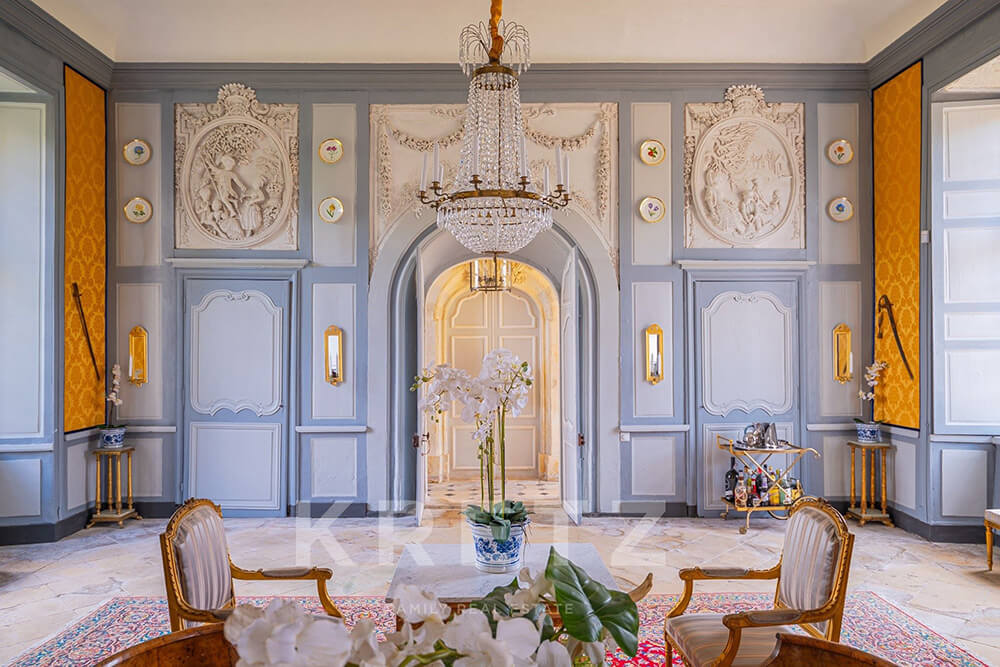 Picking my jaw up off the floor. This château is an absolute beauty with a really pretty exterior and grounds and the architectural details inside are so elegant. For sale via Kretz for €1,790,000.