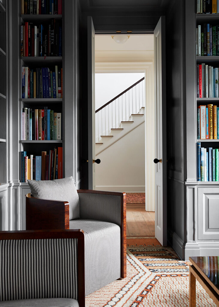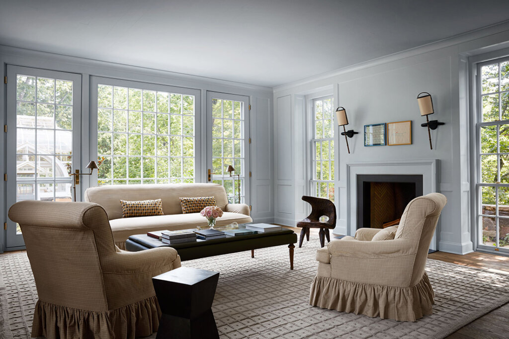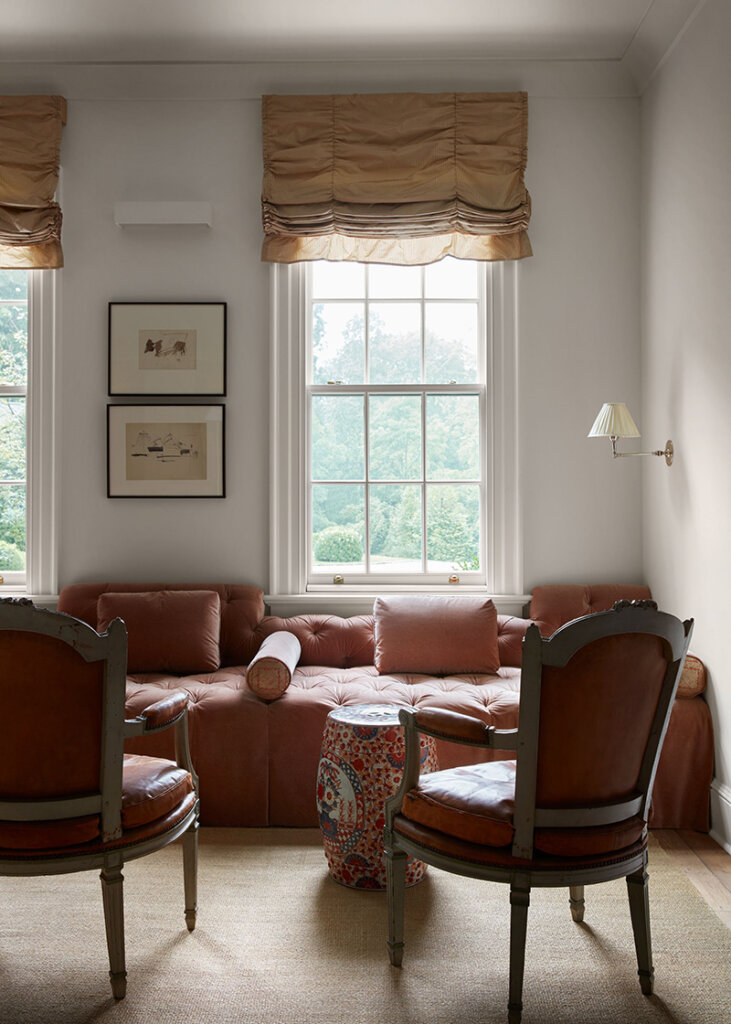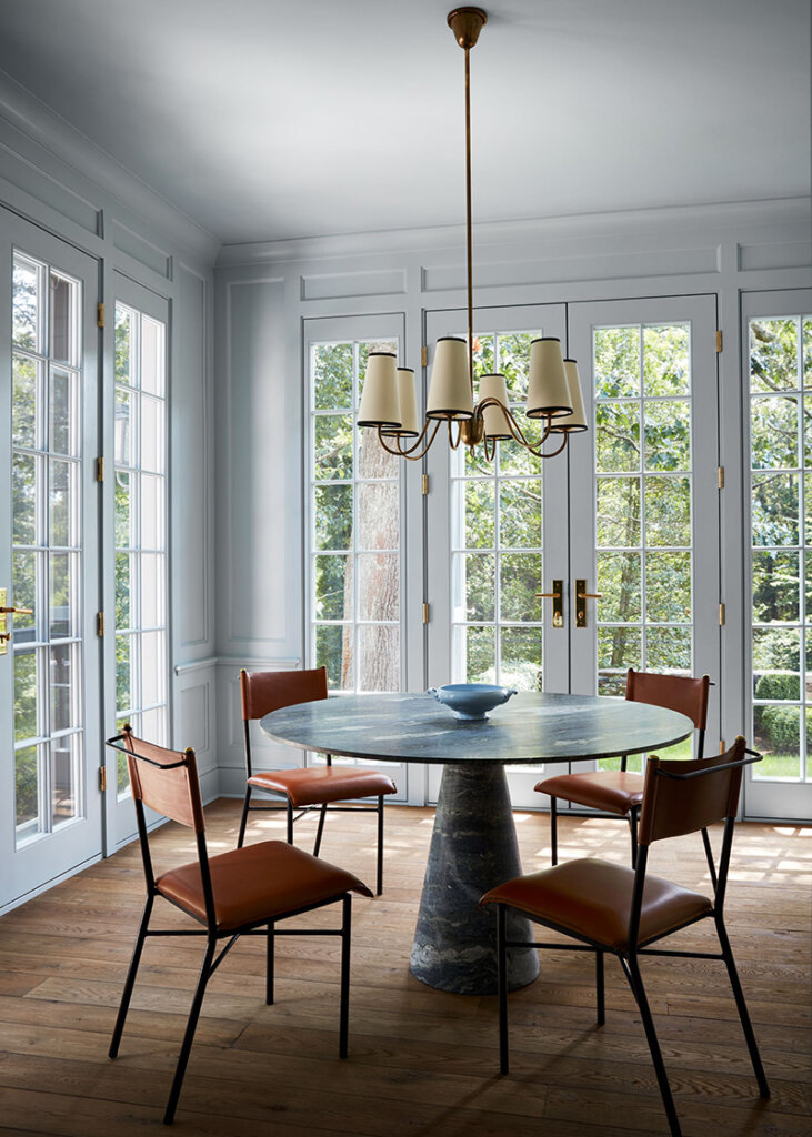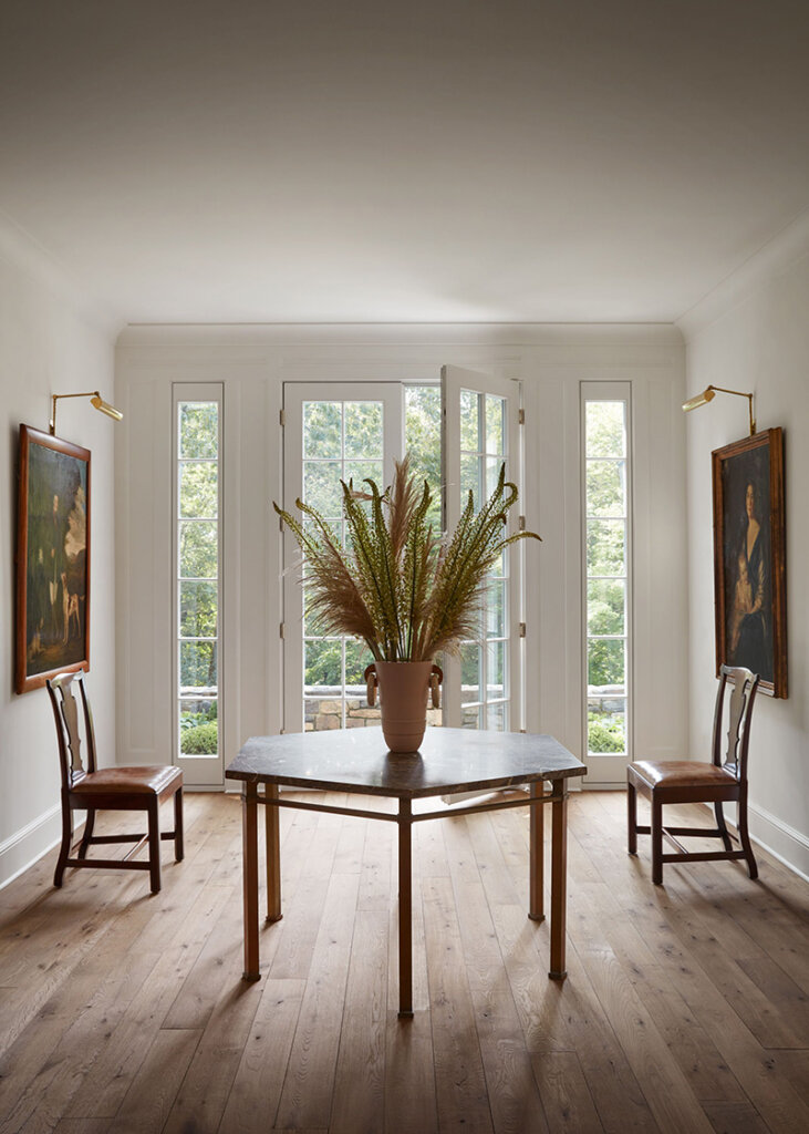 We worked with Hamady Architects on the gut renovation of this 1920s Georgian-style house for a young family with three small children and three dogs. The decor, reflecting the wife’s passion for art and antiques, strives for elegance without pretension or fussiness—a pared-down version of the stately yet stylish interiors conjured by the great decorators of yesteryear. Throughout the home, floors of beautiful reclaimed oak set the stage for restrained compositions of fine furnishings of wide-ranging period and nationality. By complementing and gently contradicting the language of the architecture, the design embraces the past while keeping one foot firmly planted in the present.