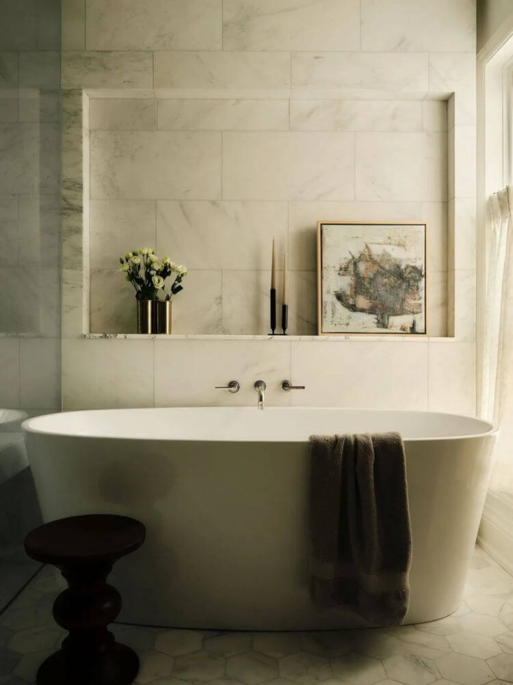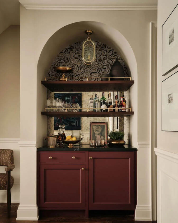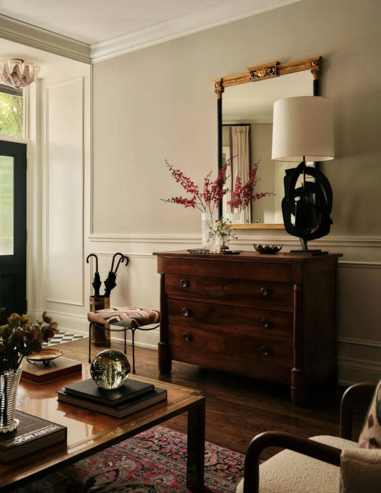 Summerhill Victorian by the Toronto-based TOM team has been reimagined to trade a too-perfect finish for warmth, texture and a touch of drama. Architectural details have been brought back with custom panelling and lifted doorways, while the kitchen gained fresh personality through painted cabinetry, a bespoke island and burnished brass accents. The library became a standout moment, transformed with an arched niche, antique mirror and patterned wallpaper. Upstairs, a smarter layout and new seasonal deck add ease and flow. With layered vintage pieces and sculptural lighting, the home now feels moodier, more expressive and far more inviting.