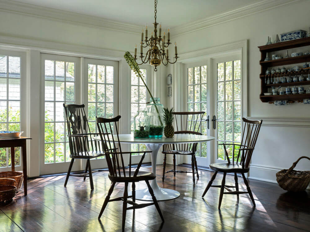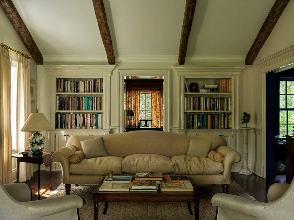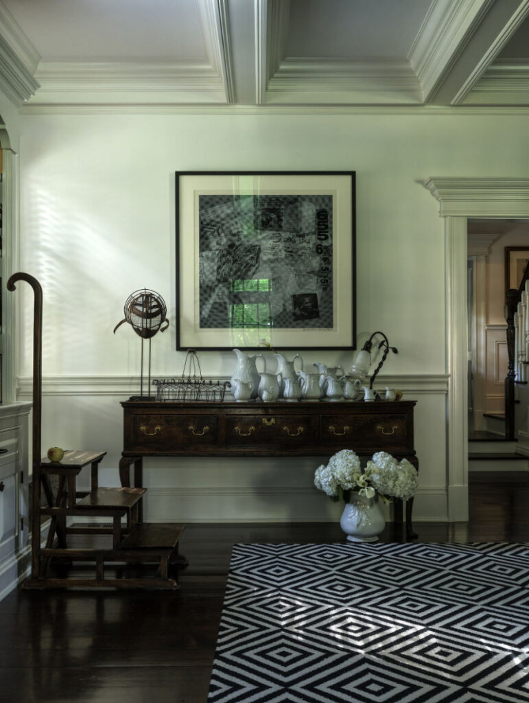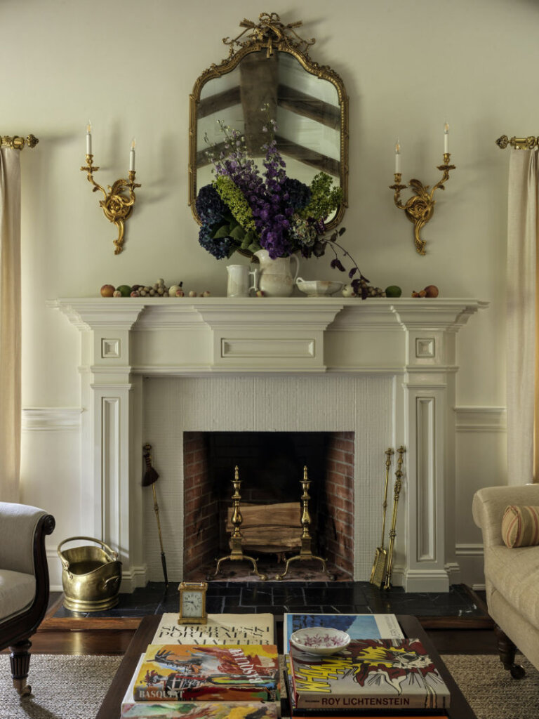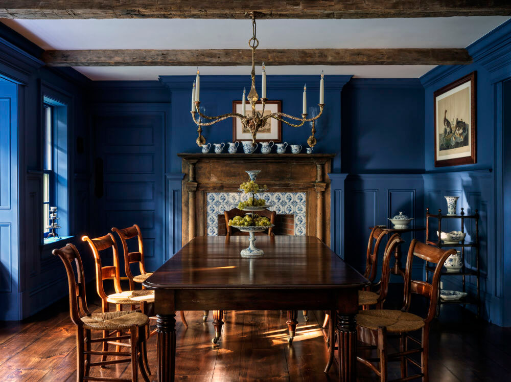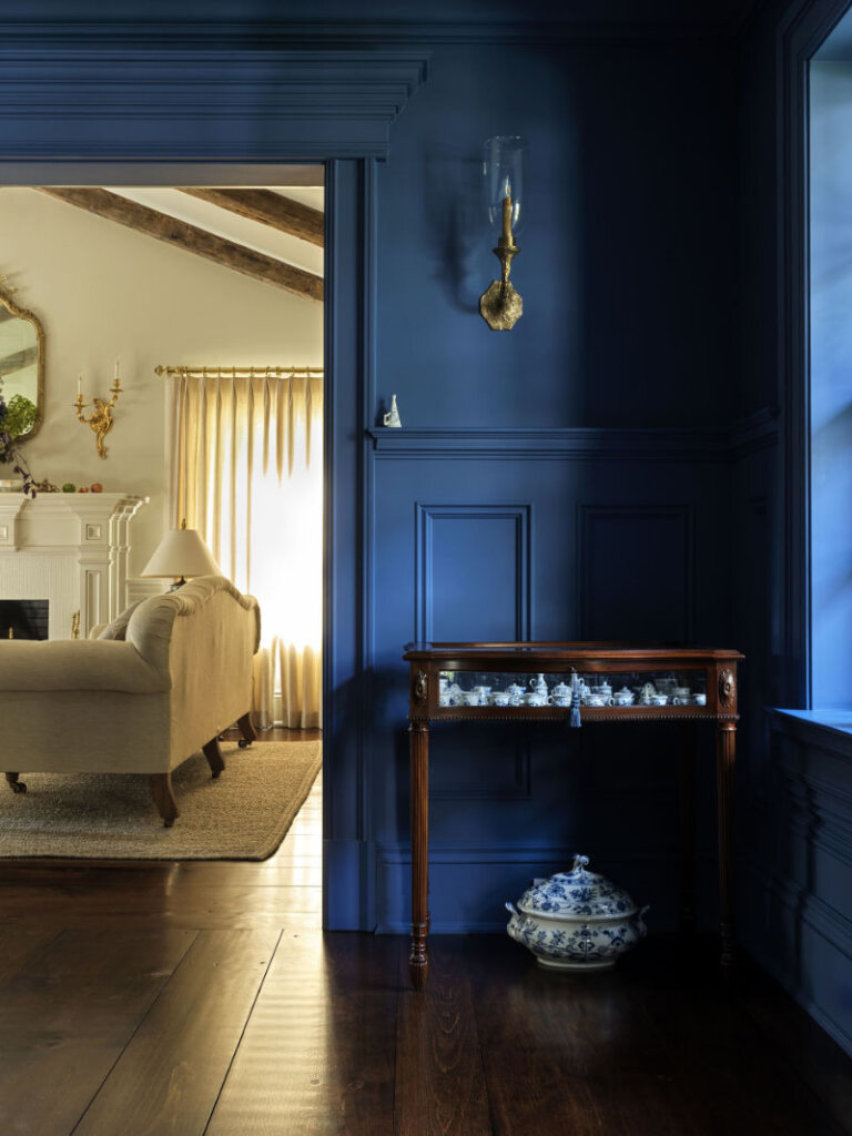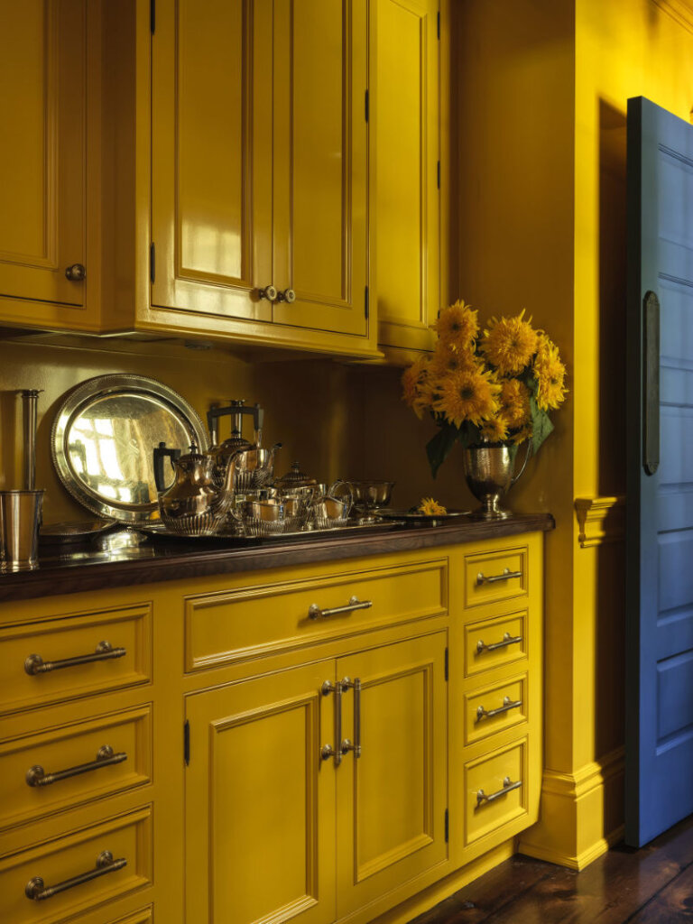 I am completely smitten with this 8,300 sq ft 1950s farmhouse in Westchester, New York designed by Sally Rigg of Rigg Design. Bold colour choices slap you in the face as soon as you walk in the front door – Ressource Paints’ La Pinède green on the walls paired with scenic Zuber wallpaper, then a dining room in a blue as blue can be (Farrow & Ball’s Dinnerware), which leads into a curry yellow butler’s pantry. The colours come at you again in the primary bedroom with a gorgeous de Gournay wall covering. I love that there are rooms of total drama and colour drenching but then some moments of calm with mostly white spaces. It makes the colourful rooms that much more impactful. Photos: Chris Mottalini.