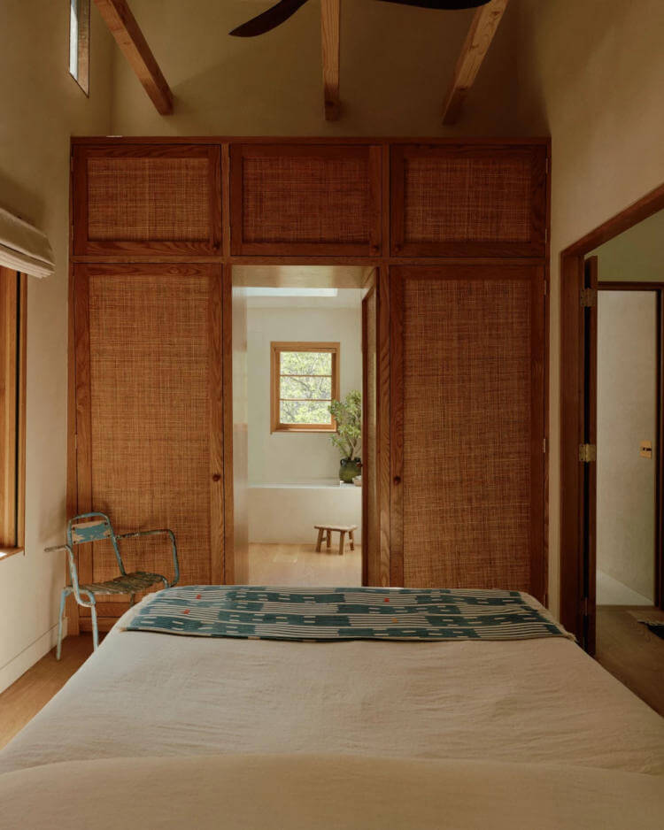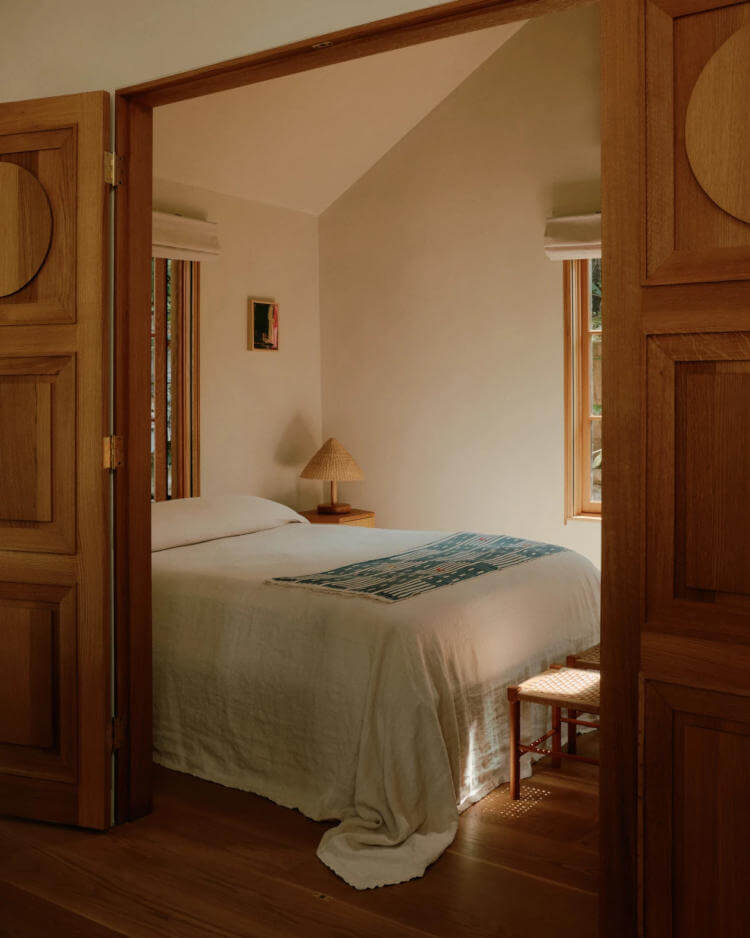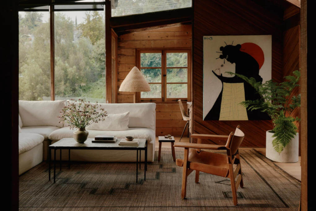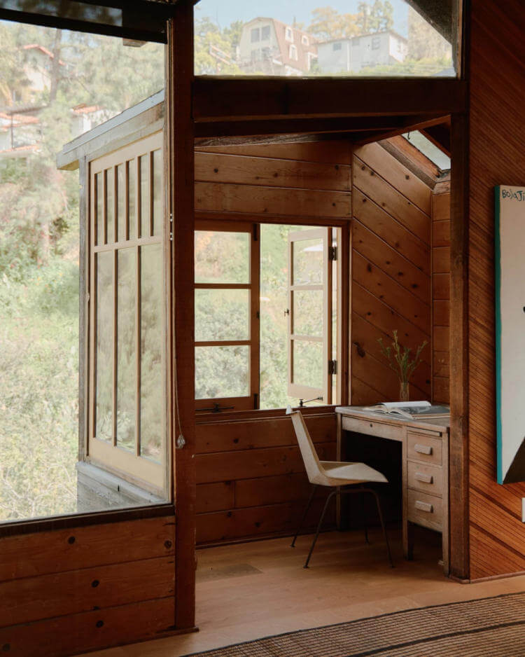 NoNo Studio, based in Los Angeles, Mexico City and New York, delivers architecture, interiors and product design with a playful, exploratory spirit. Their Moon Canyon project reimagines a 1930s hunting cabin in Mount Washington, restoring its shaky frame with a careful, steady approach. The renovation preserves the home’s eccentric character, highlighted by original pine and cedar panelling and a stained-glass insert created by a CalArts student in the 1970s.